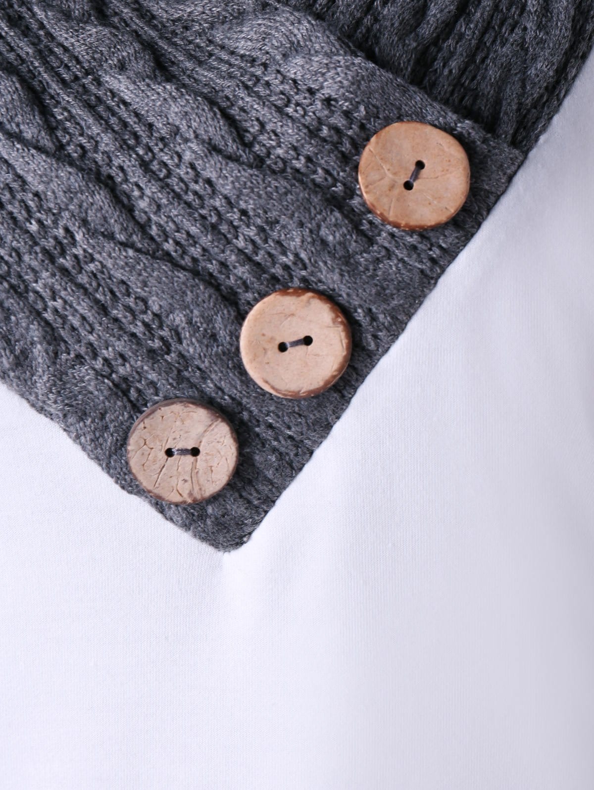 Two tones sweatshirt featuring cable knit panel collar and overwide stretched bottom with buttons embellished in detail