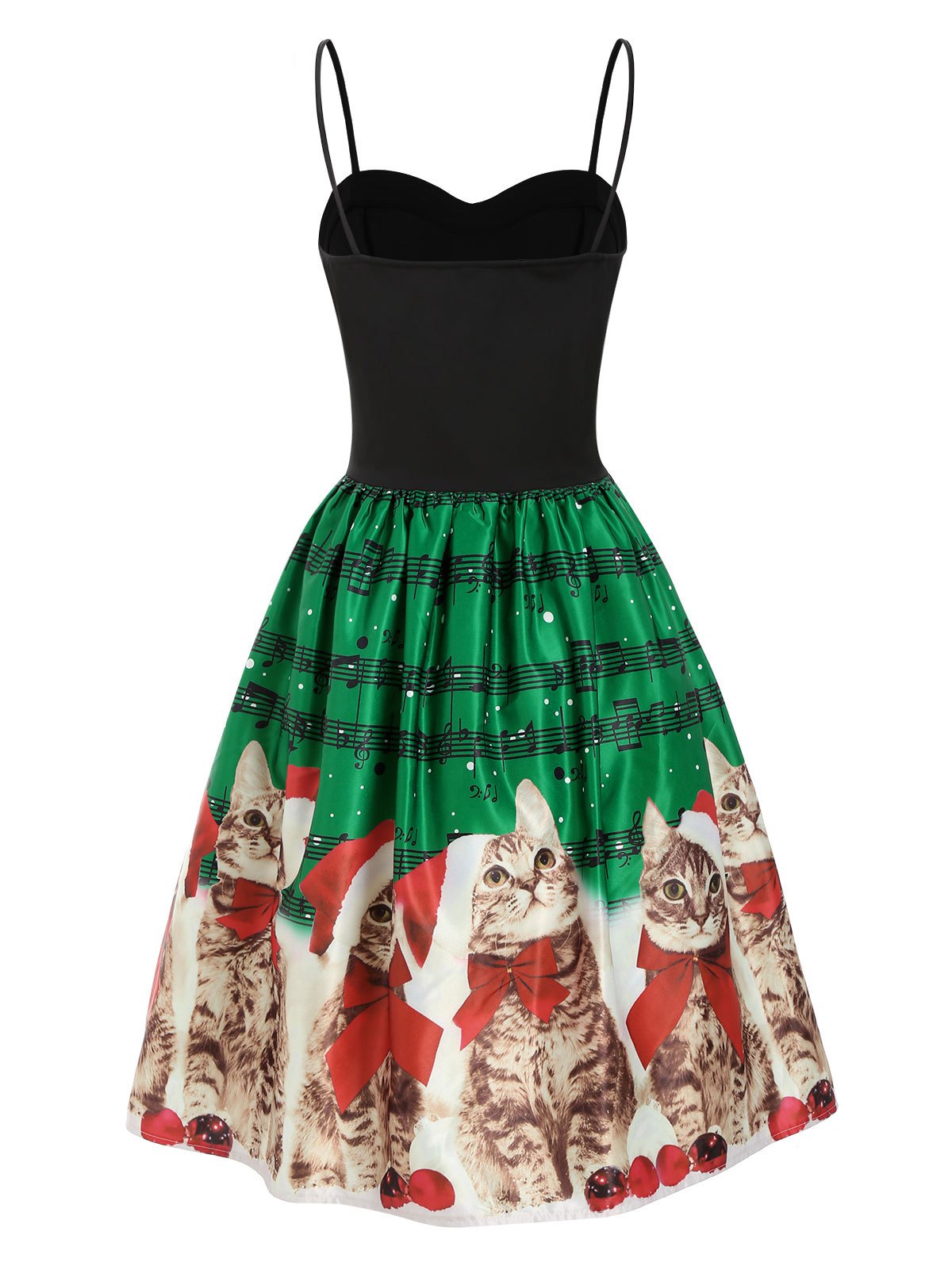 Christmas Cat Musical Note Lace Up Cami Dress