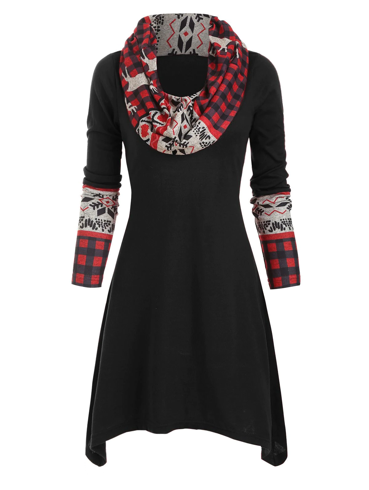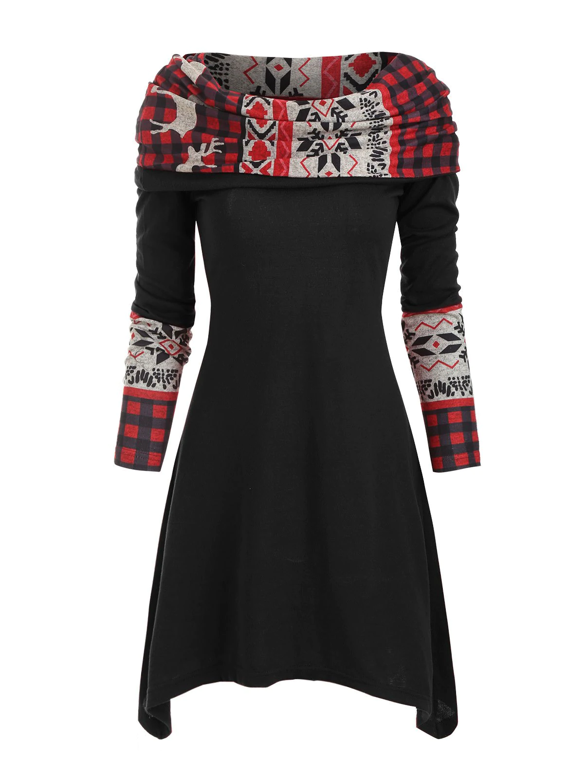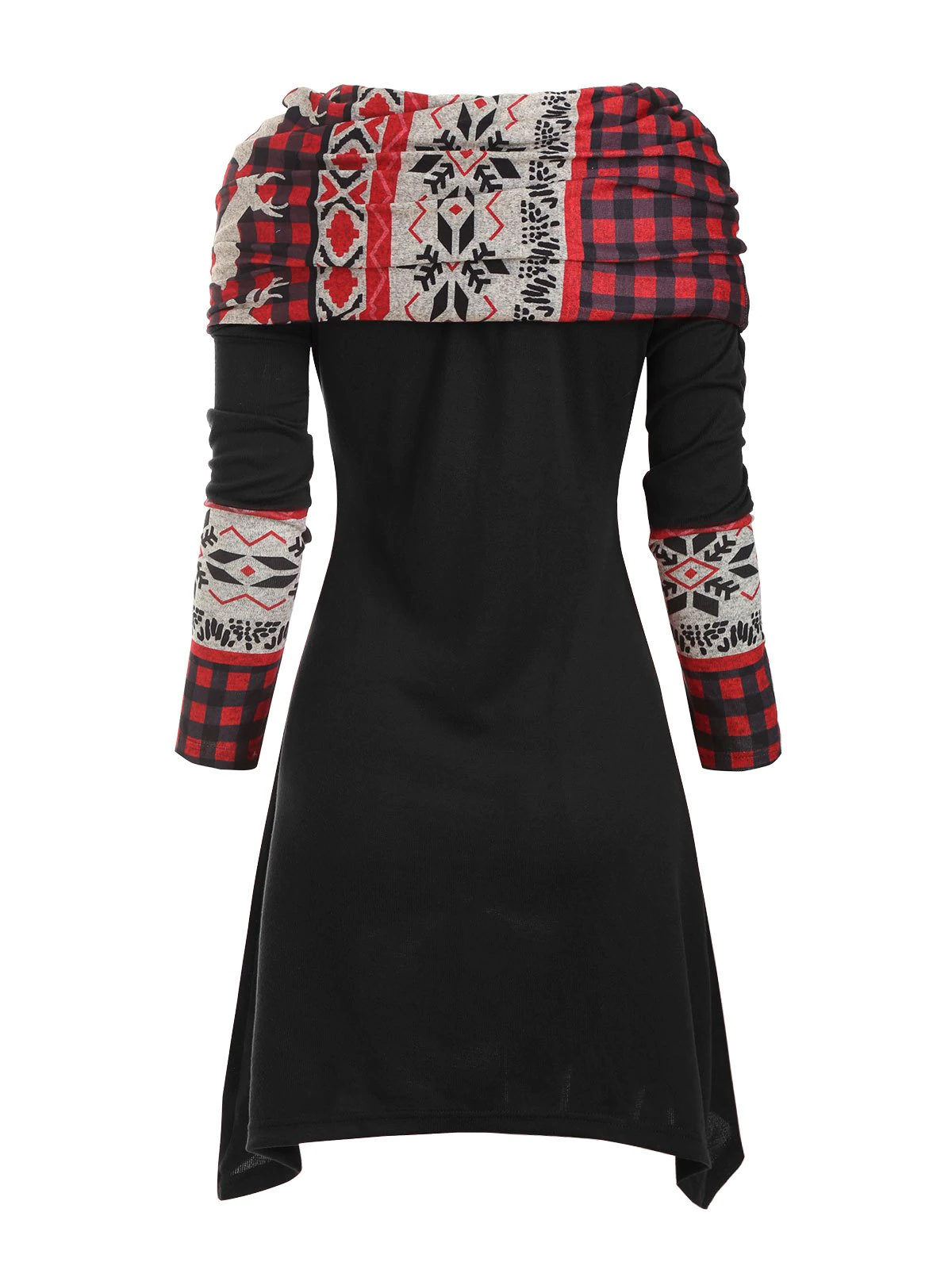 Christmas Elk Plaid Knitted Multiway Asymmetrical Dress