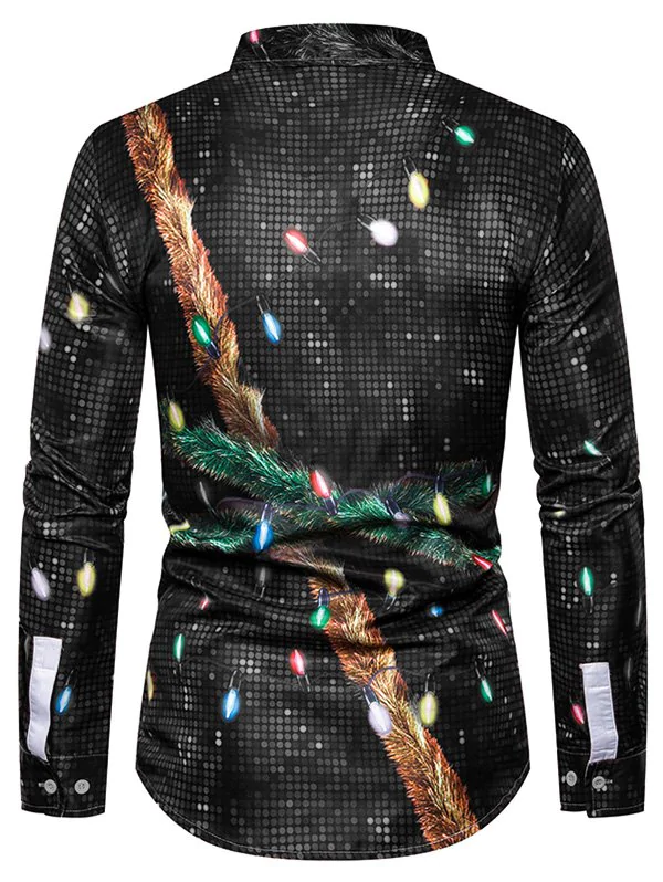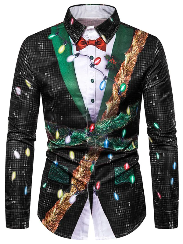 Christmas Faux Sequins Button Up Tuxedo Shirt