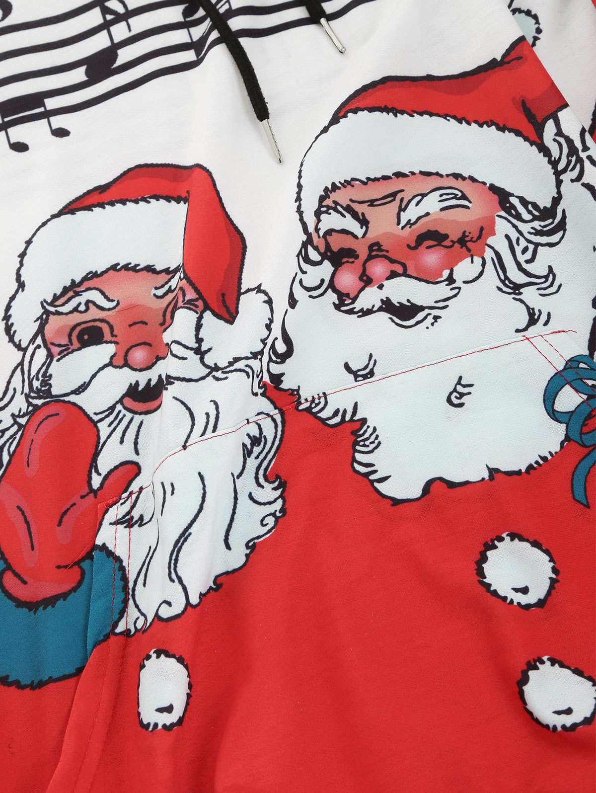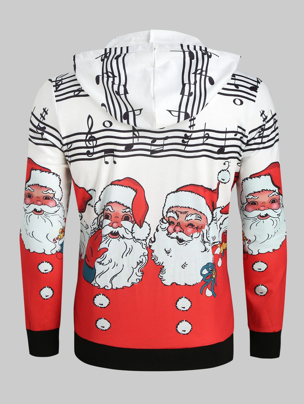 Christmas Santa Claus and Music Notes Print Kangaroo Pocket Hood