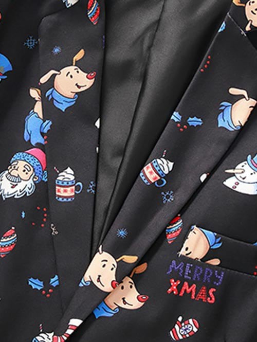 Christmas Santa Claus Snowman Animal Print Lapel Side Slit Blaze