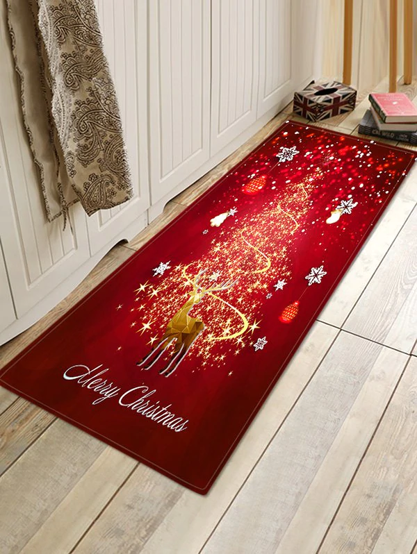 Christmas Snowflake Deer Print Decorative Flannel Floor Mat