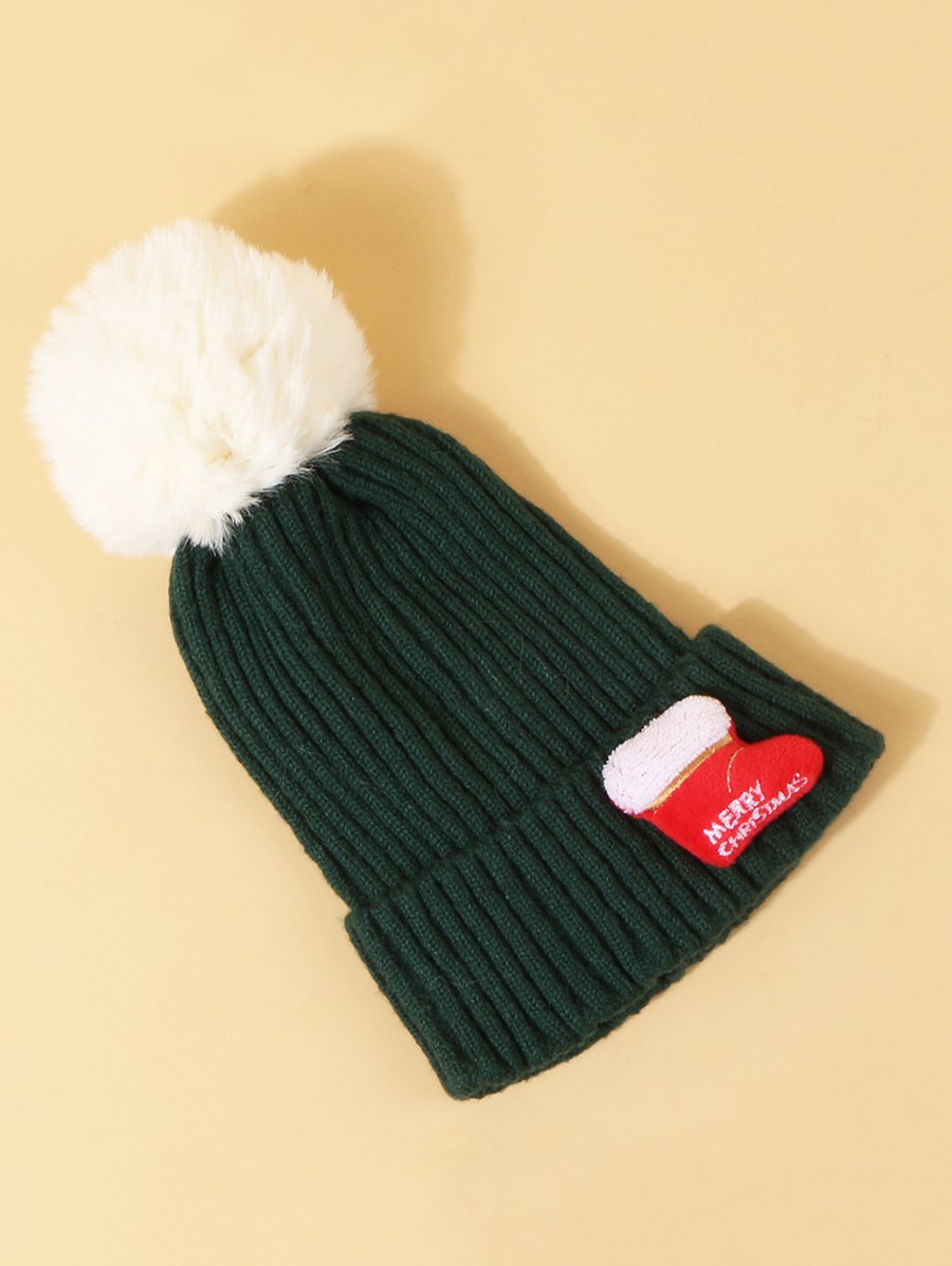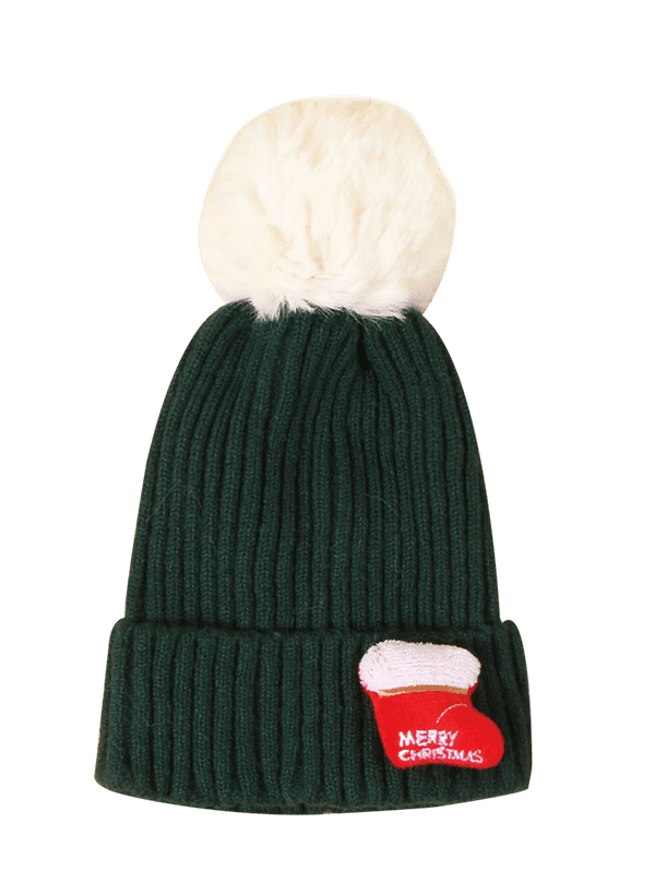 Christmas Stocking Pattern Knitted Pom Pom Hat