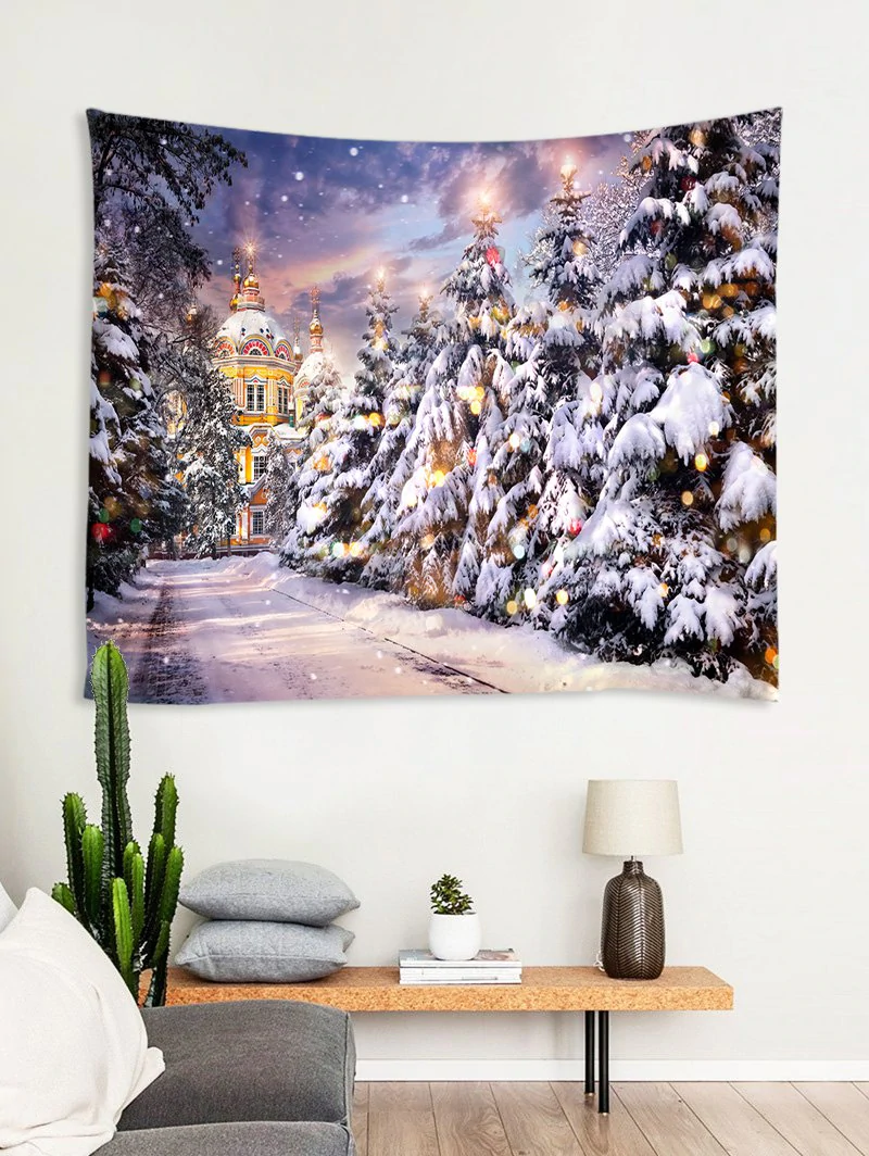 Christmas Tree Castle Street Print Tapestry Wall Hanging Art Dec