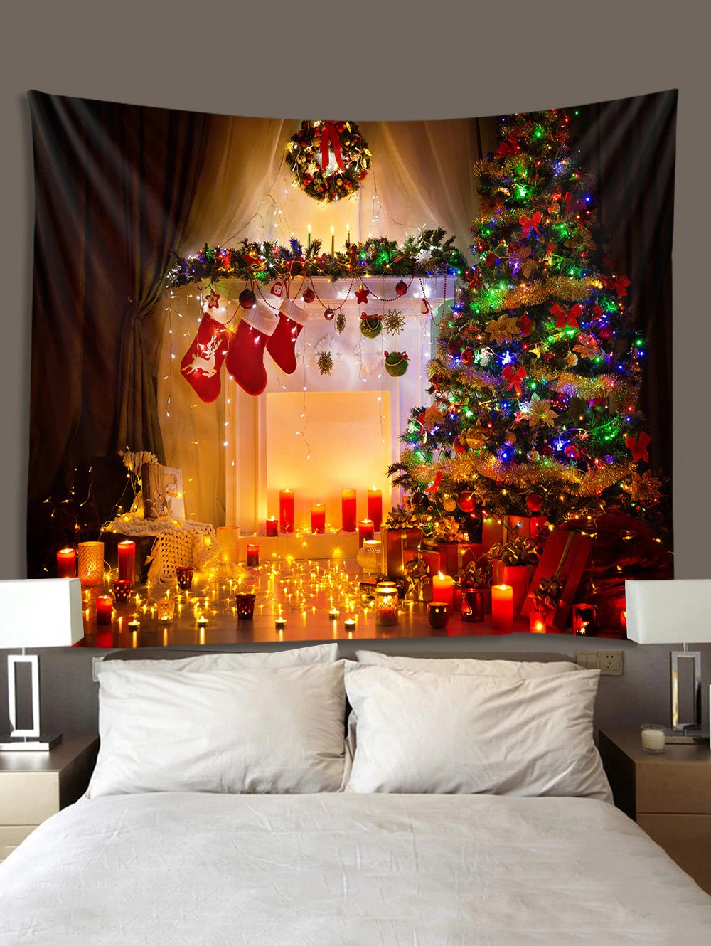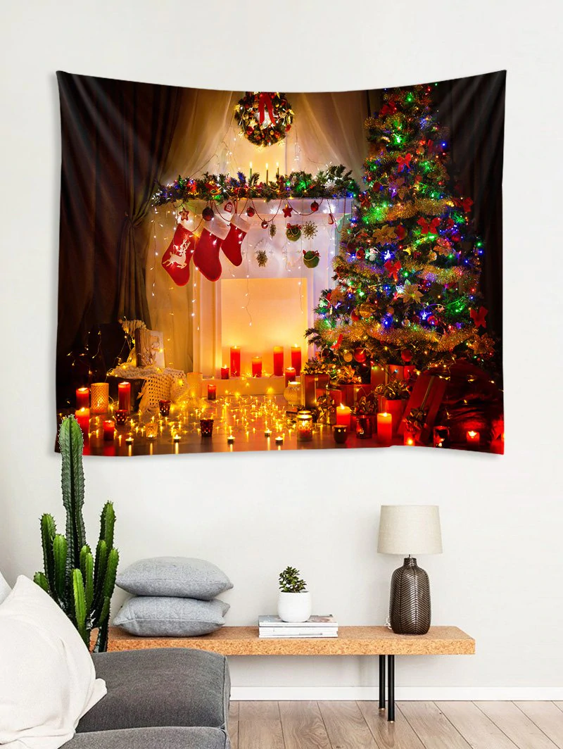 Christmas Tree Fireplace 3D Print Wall Tapestry