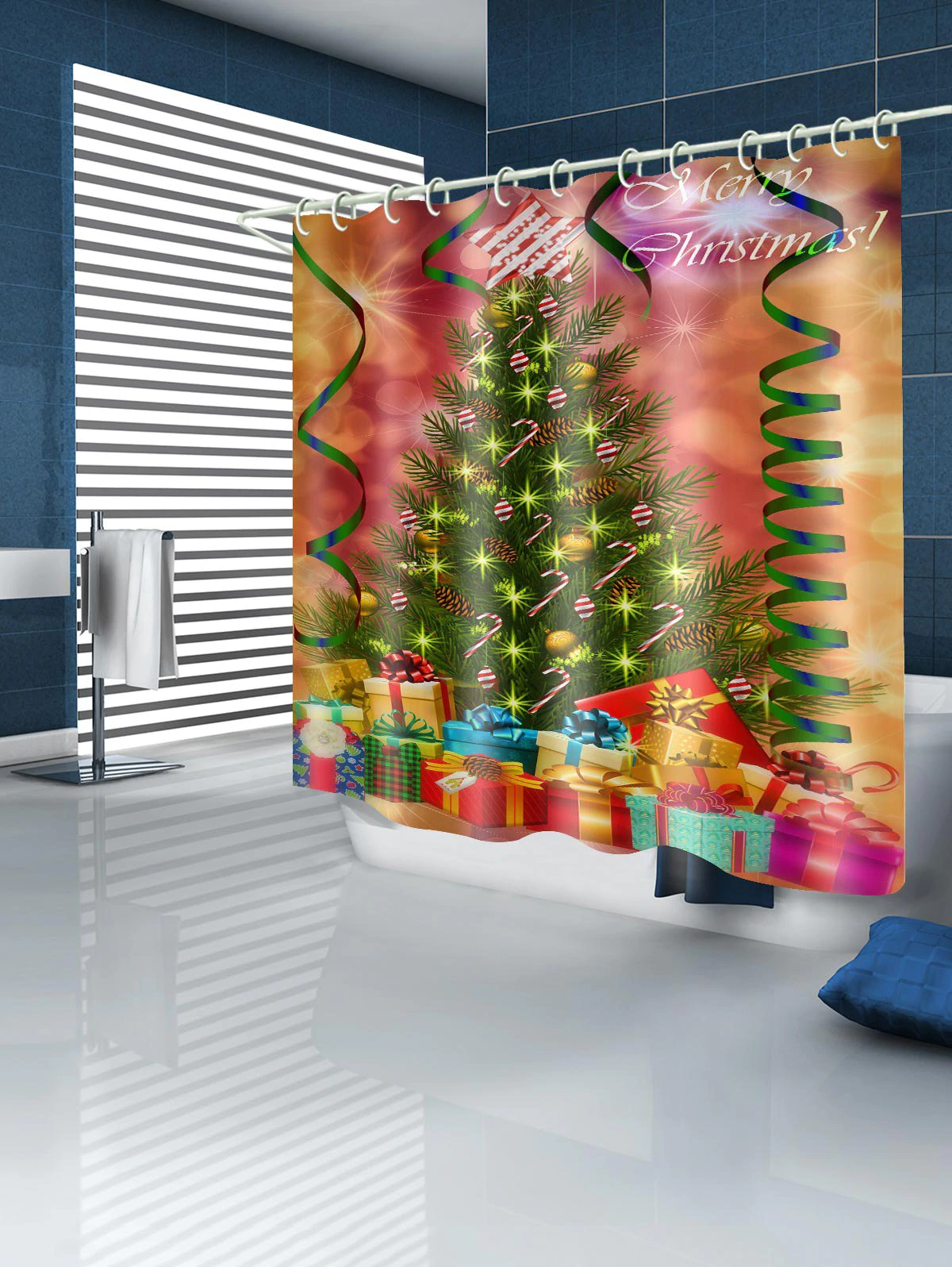 Christmas Tree Gift Waterproof Bath Shower Curtain