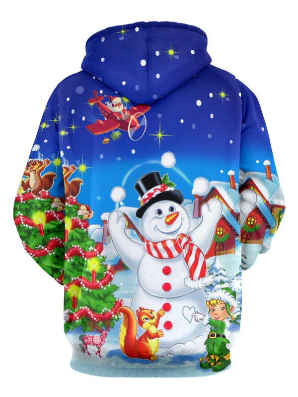 Christmas Tree Snowman Santa Print Drawstring Hoodie