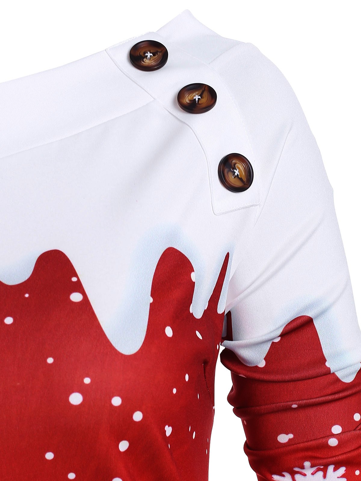 With the cute Christmas tree, snowman, and snowflake for a funny look that feels just perfect for Christmas, this plus size sweatshirt is elevated with the one-shoulder neckline to add an extra flirt to this casual style.
