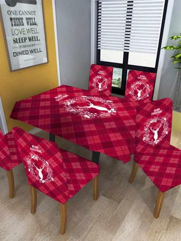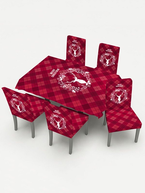 1 review for Christmas Wreath Elk Plaid Pattern Chair Cover