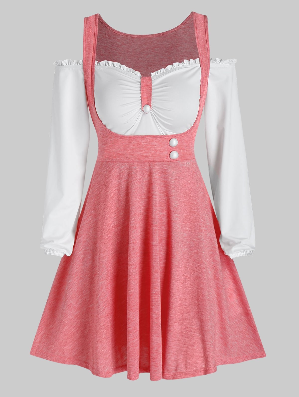 Cold Shoulder Contrast Faux Twinset Dress