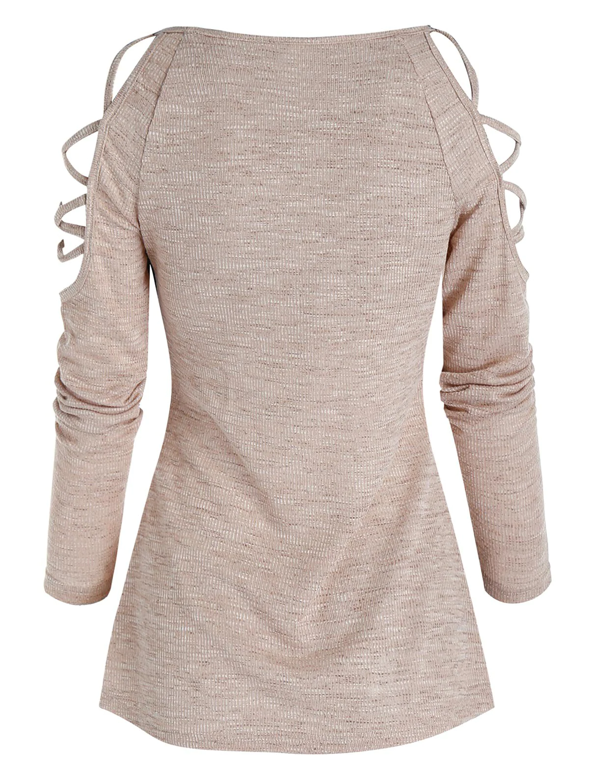 Cold Shoulder Criss-cross Ribbed T-shirt