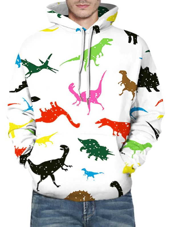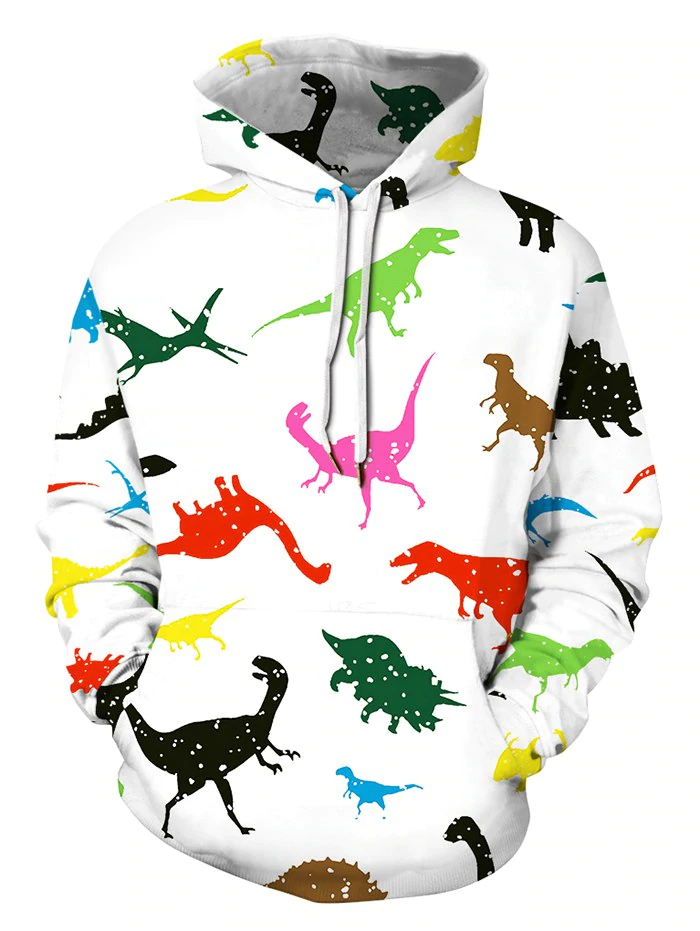 3 reviews for Colorful Dinosaur Print Front Pocket Casual Hoodie