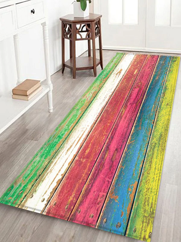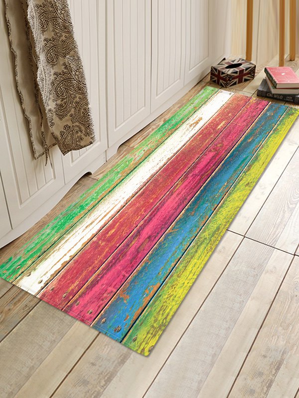 Colorful Wood Board Patterned Water Absorption Area Rug