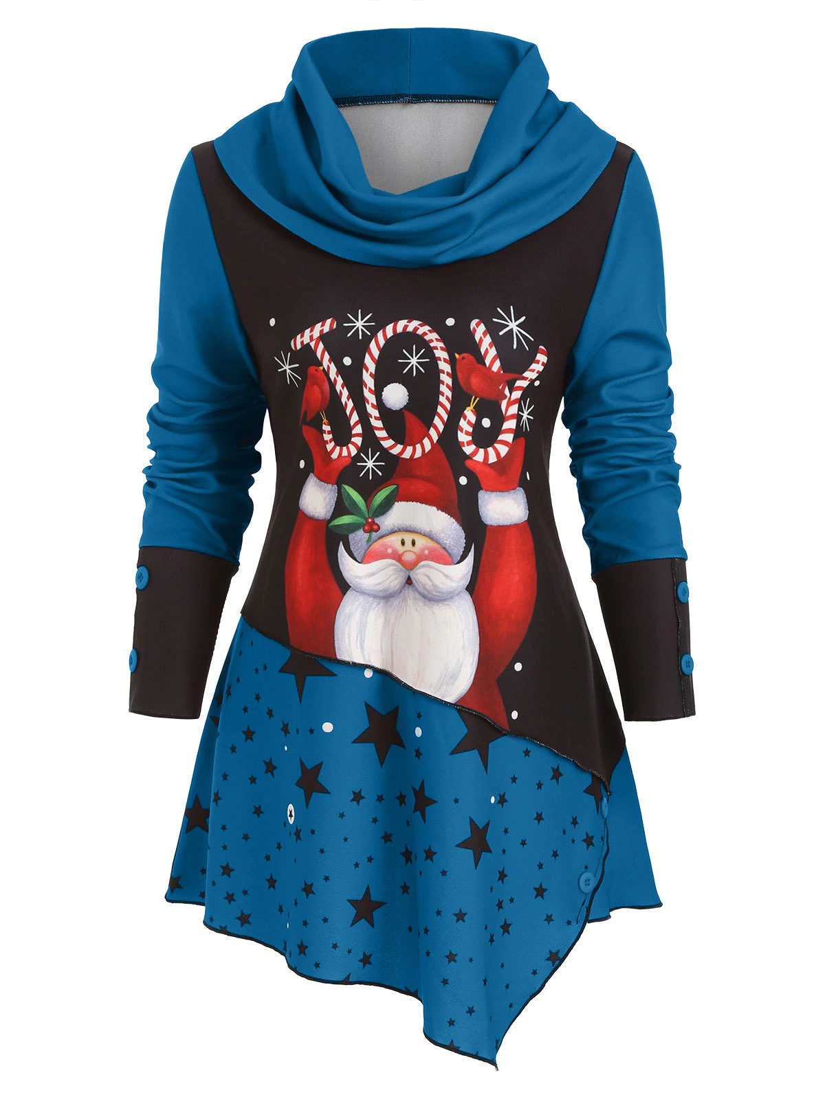 Cowl Neck Santa Claus Asymmetric Christmas Top