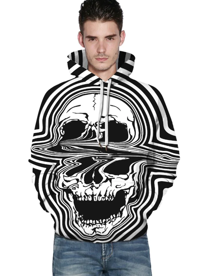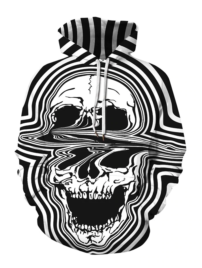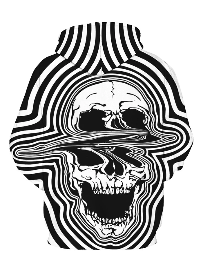 Distorted Skull Pattern Front Pocket Drawstring Hoodie