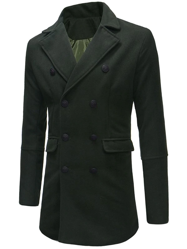 Double-breasted Flap Pocket Woolen Coat