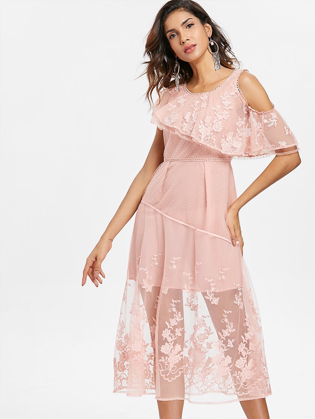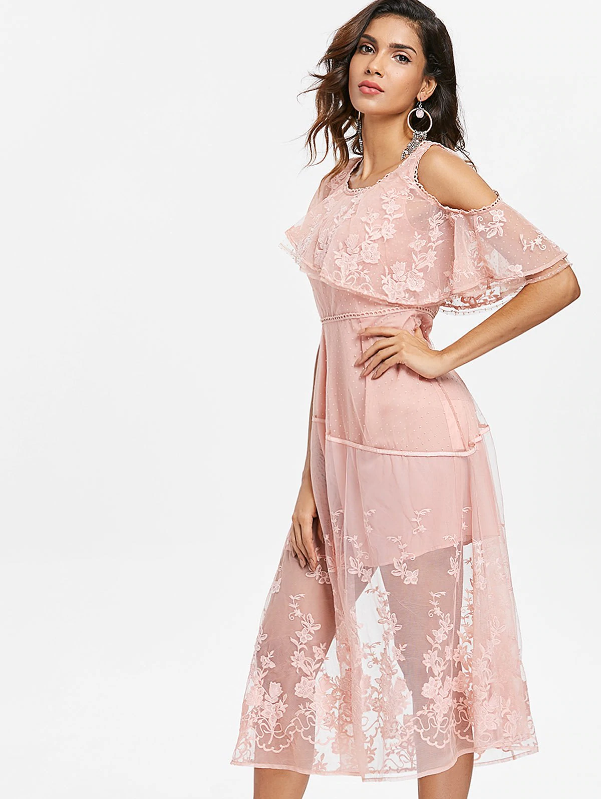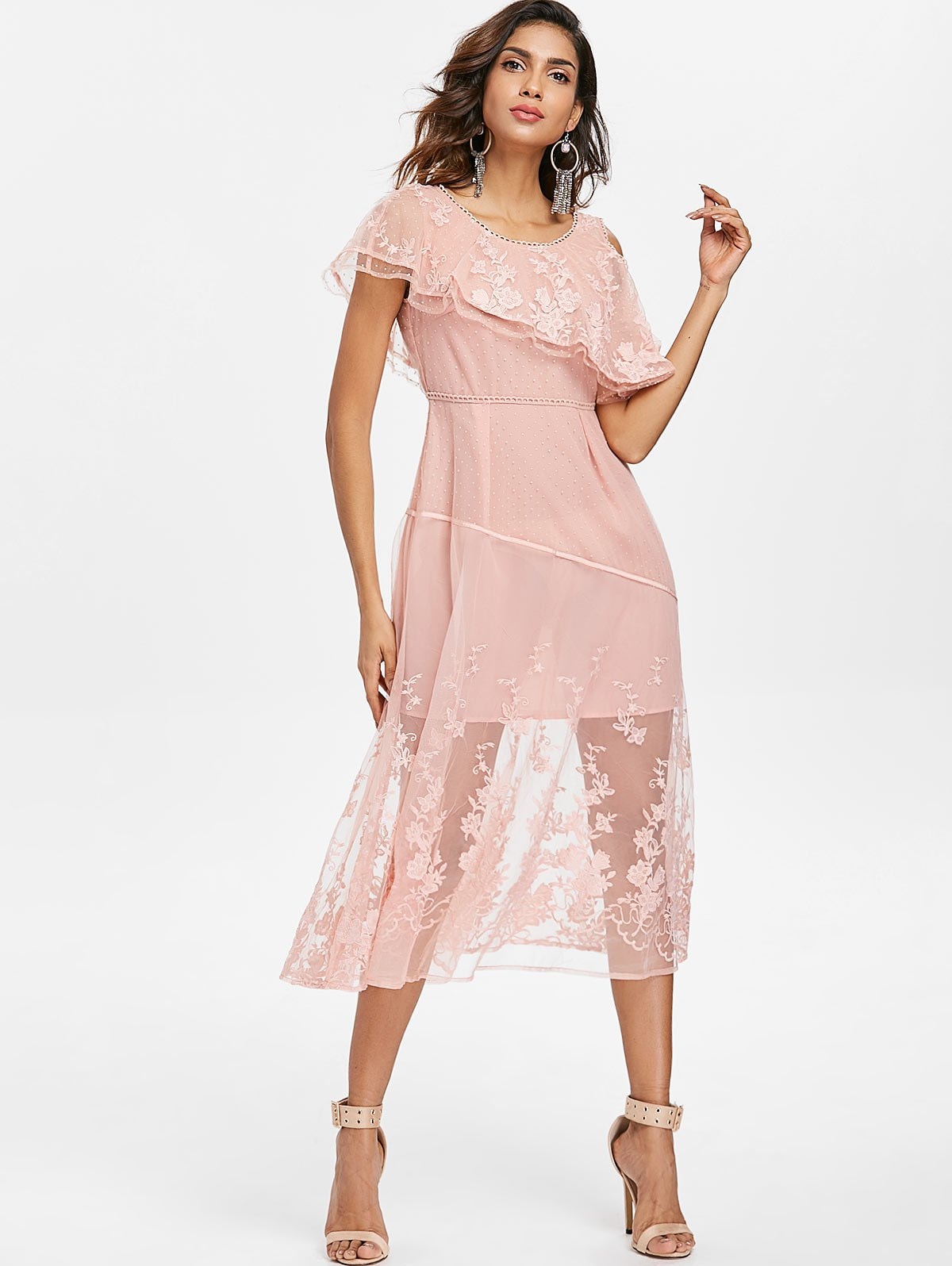 Embroidered Sheer Lace Midi Dress