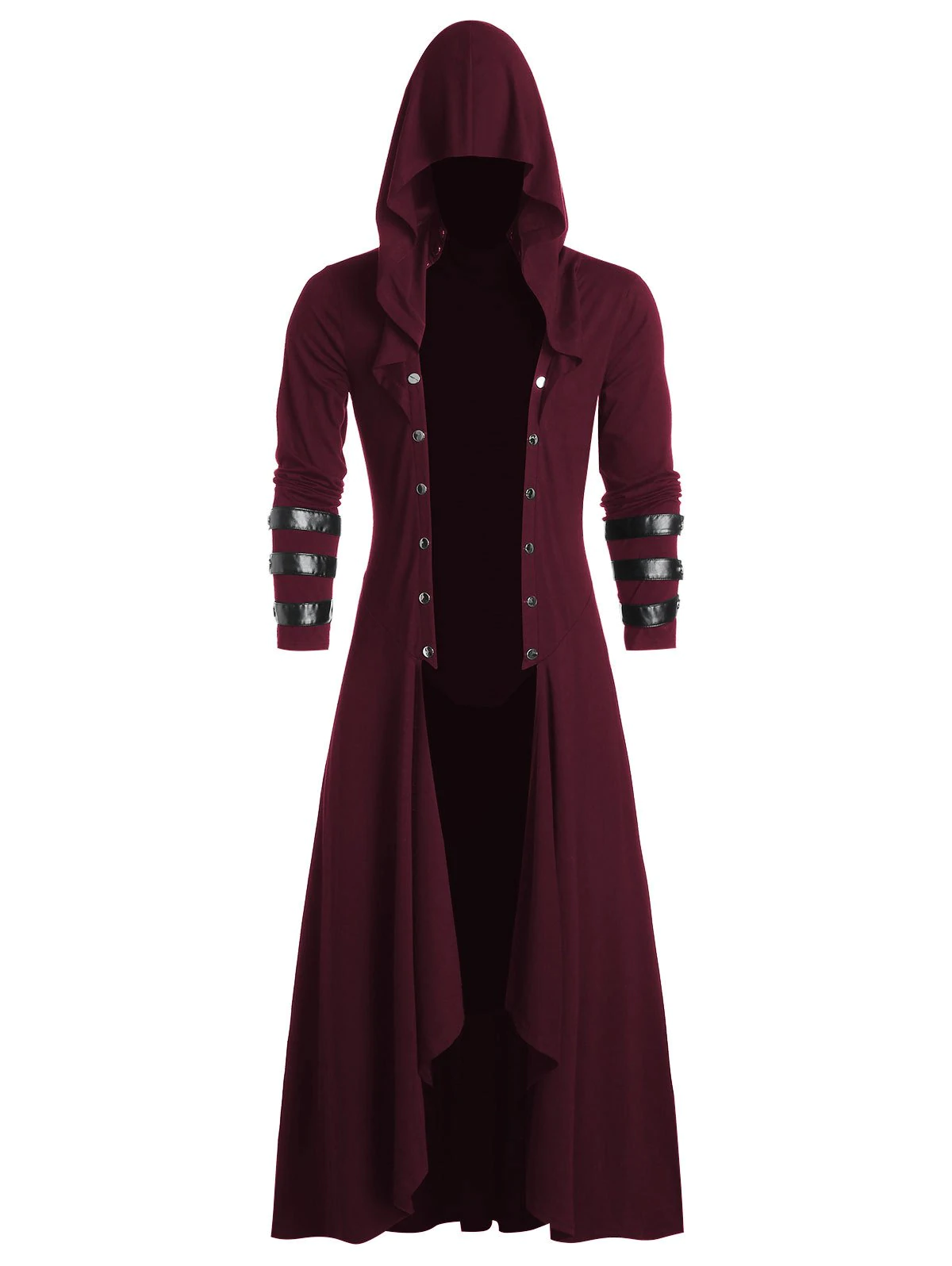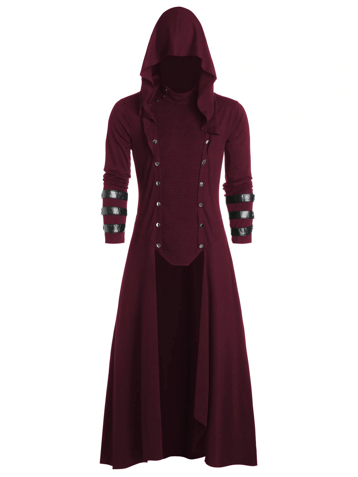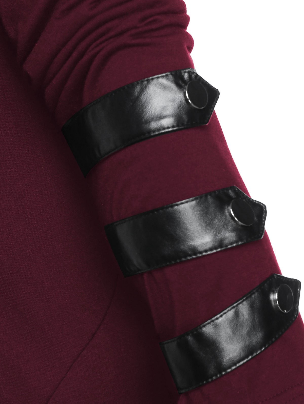 Faux Leather Insert Button Up Gothic Hoodie