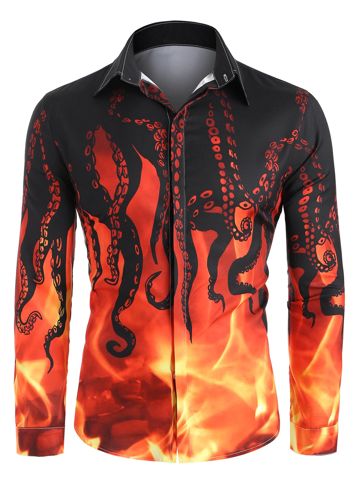 Fire Octopus Pattern Long Sleeve Button Up Shirt