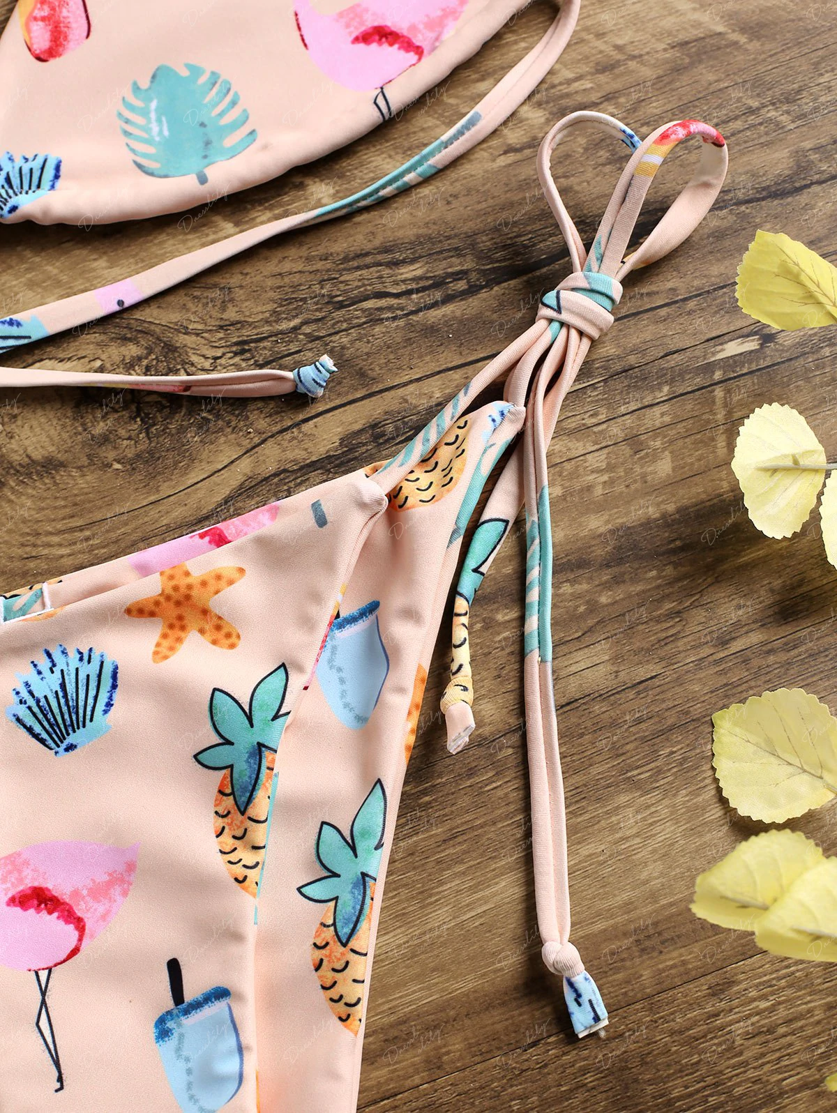 Soak up the sun in this bikini featuring vibrant flamingo and sea creatures pattern for added style and appeal. No padded bikini top with tie-strings at neck and back for a comfortable fit. The string bikini bottom offers you necessary coverage. This sweet essential will keep you confident and covered all season long.