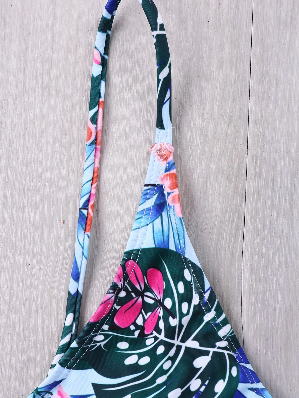 Fashion tropical bikini suit is divided into cami strap bra with padding and low waist briefs.
