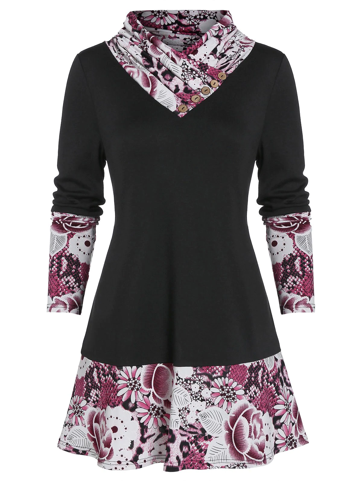Flower Snakeskin Print A Line Buttoned Long Sleeve Tee