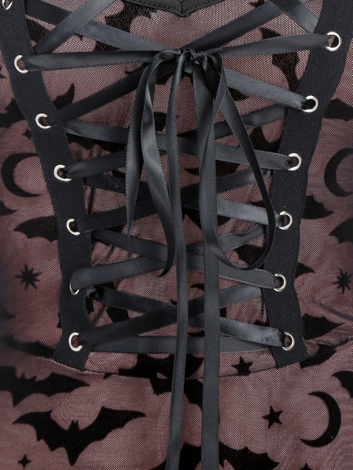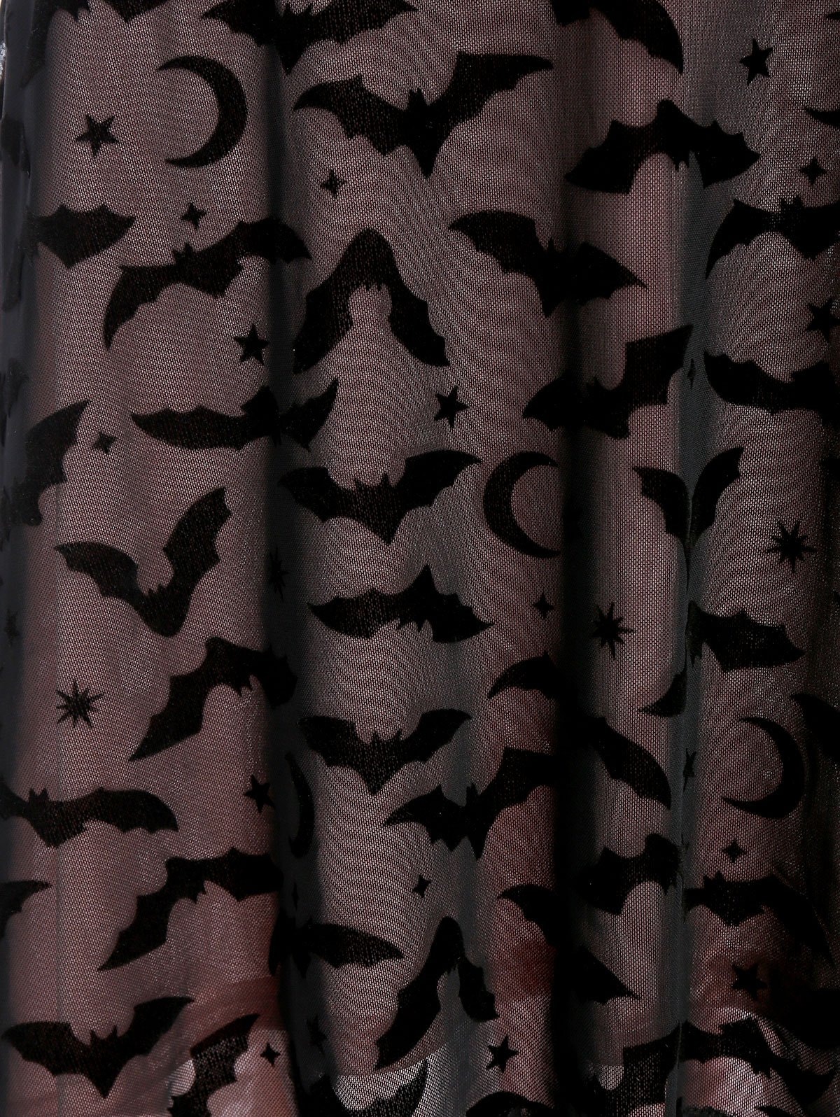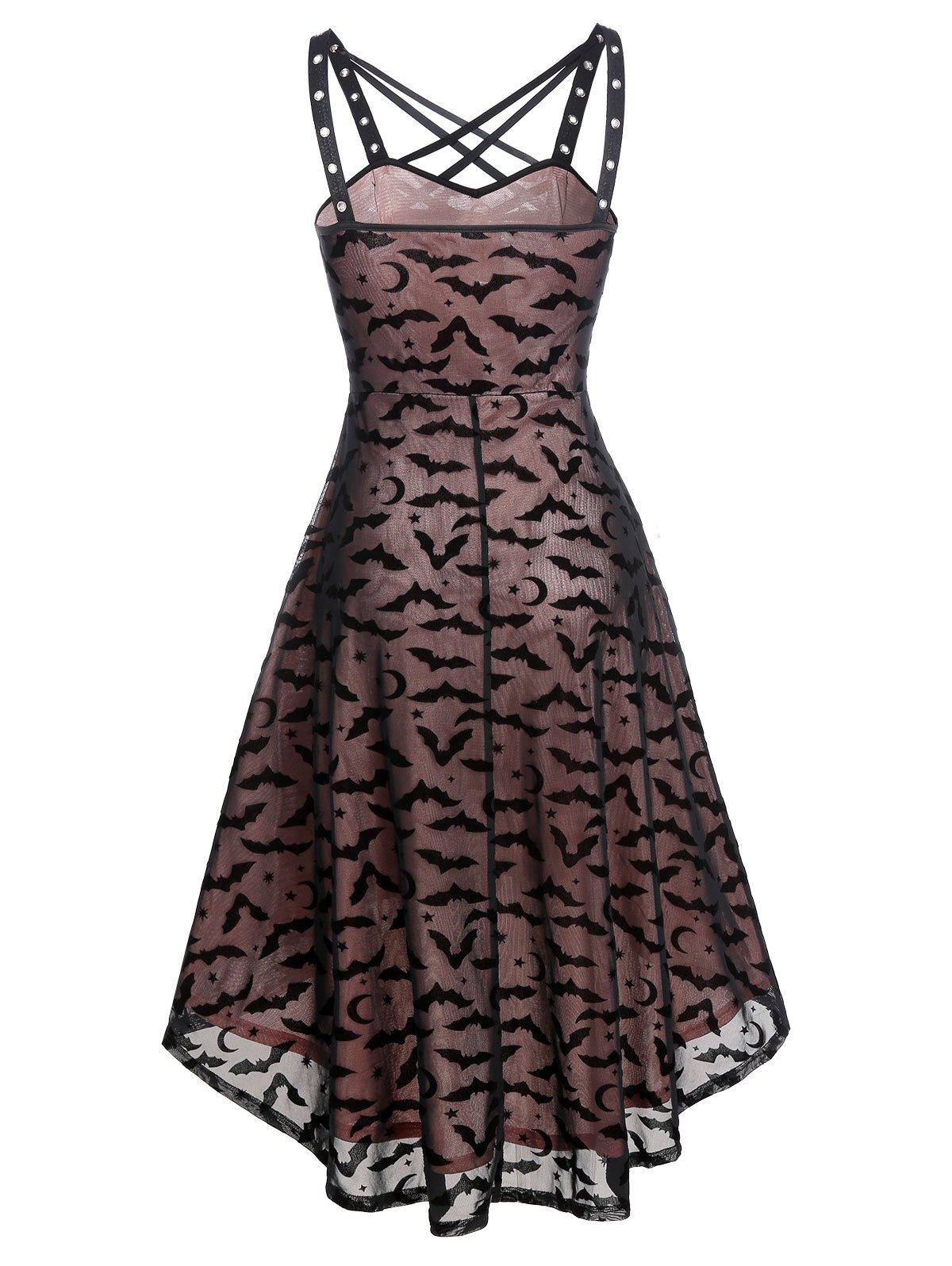 Gothic Bat Pattern Mesh Crisscross High Low Dress