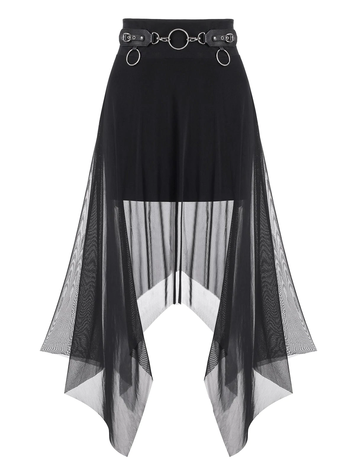 Gothic Mesh Overlay O Ring Handkerchief Skirt