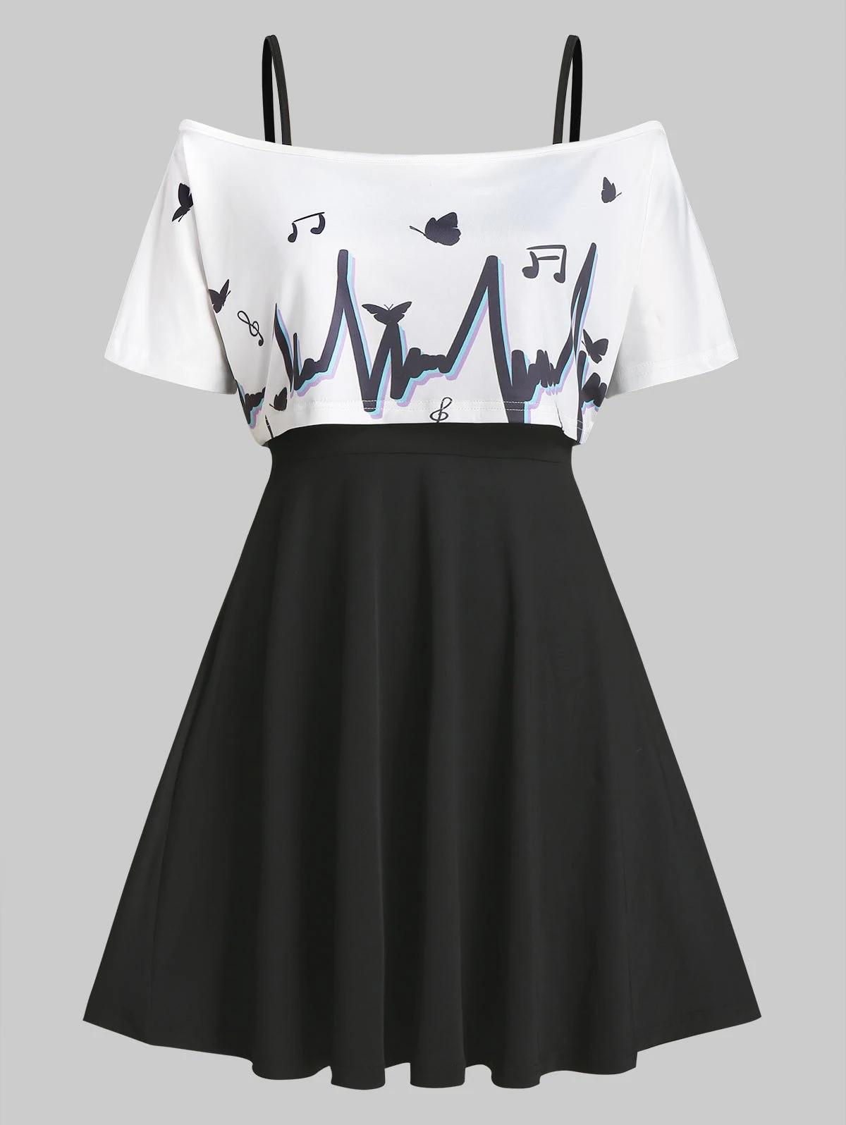 Graphic Off Shoulder Top and Cami Dress Twinset