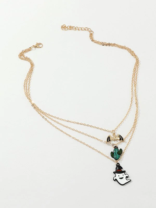Halloween Cactus Ghost Bat Layers Necklace