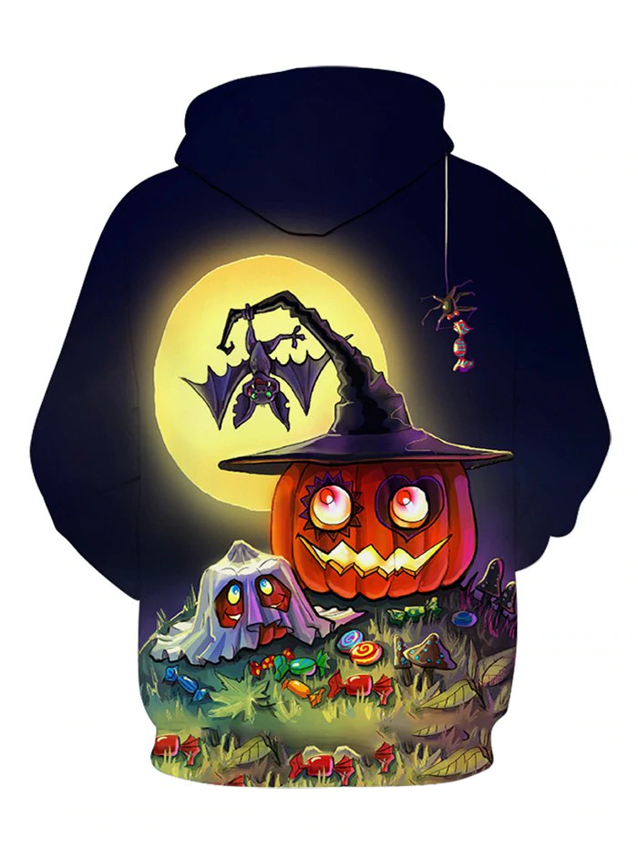 Halloween Cartoon Pumpkin Pattern Drawstring Pullover Hoodie