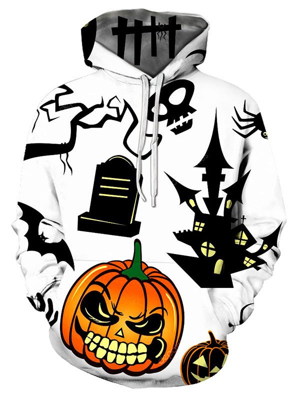 Halloween Graffiti Pumpkin Print Drawstring Pullover Hoodie