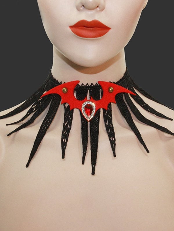 3 reviews for Halloween Lace Bat Teardrop Faux Gem Choker Necklace