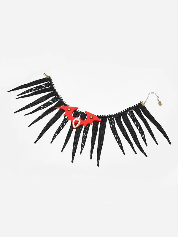 Halloween Lace Bat Teardrop Faux Gem Choker Necklace