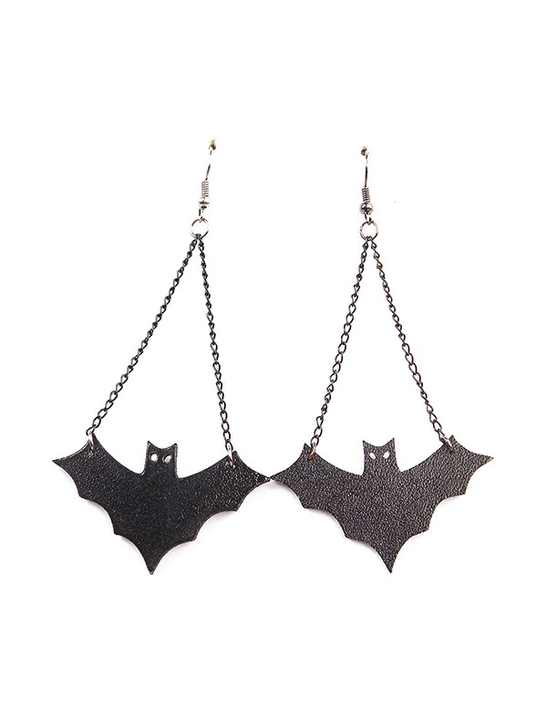 Halloween Leather Bat Chain Earrings