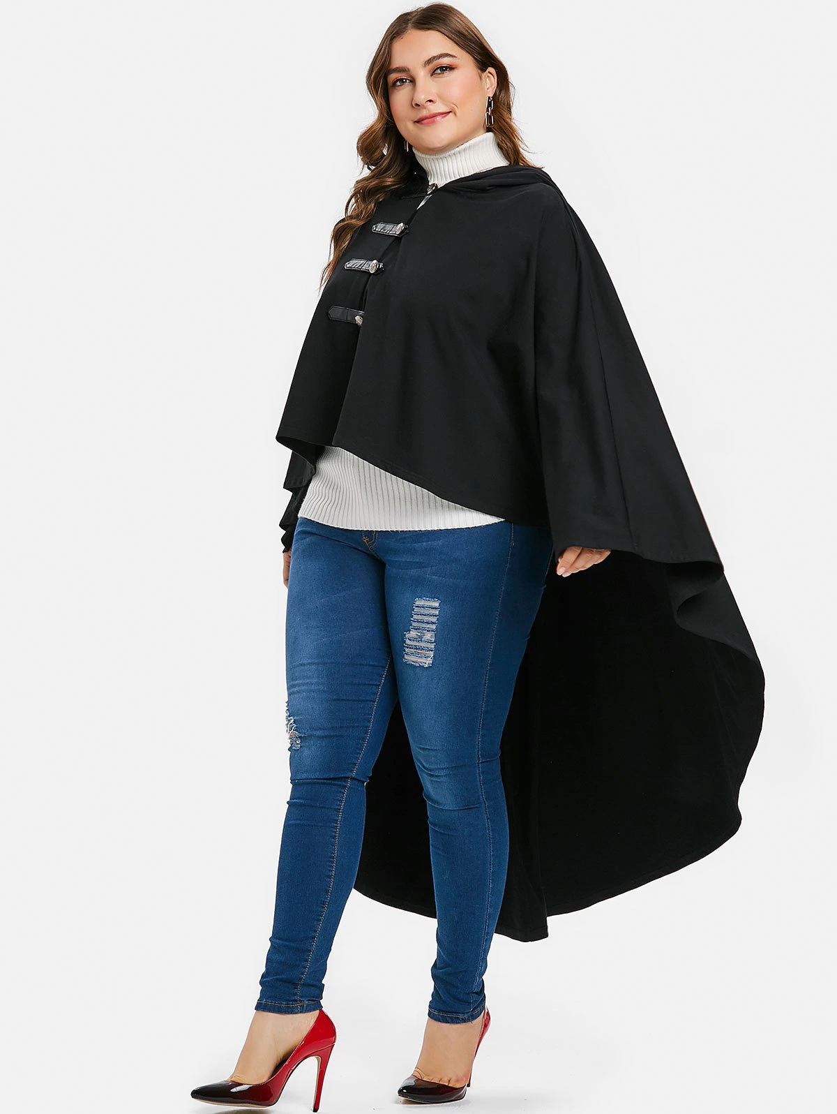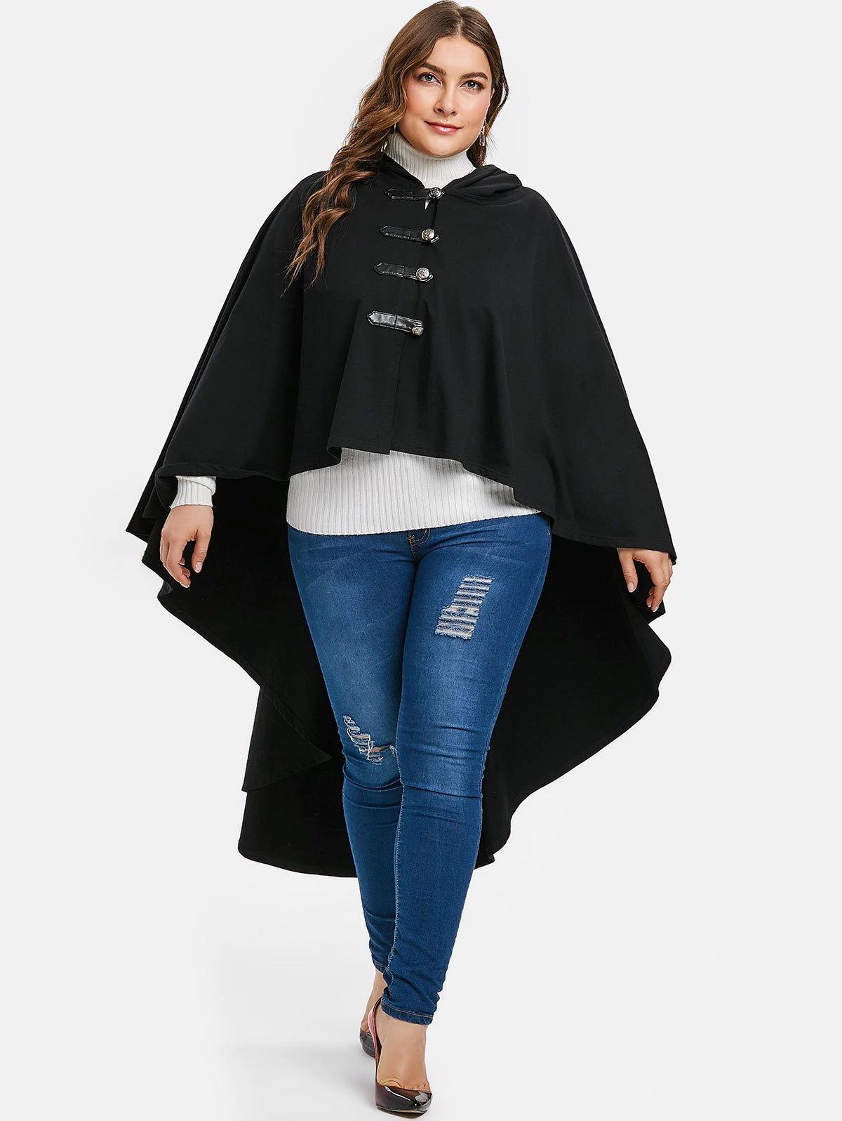 Halloween Plus Size Hooded High Low Coat