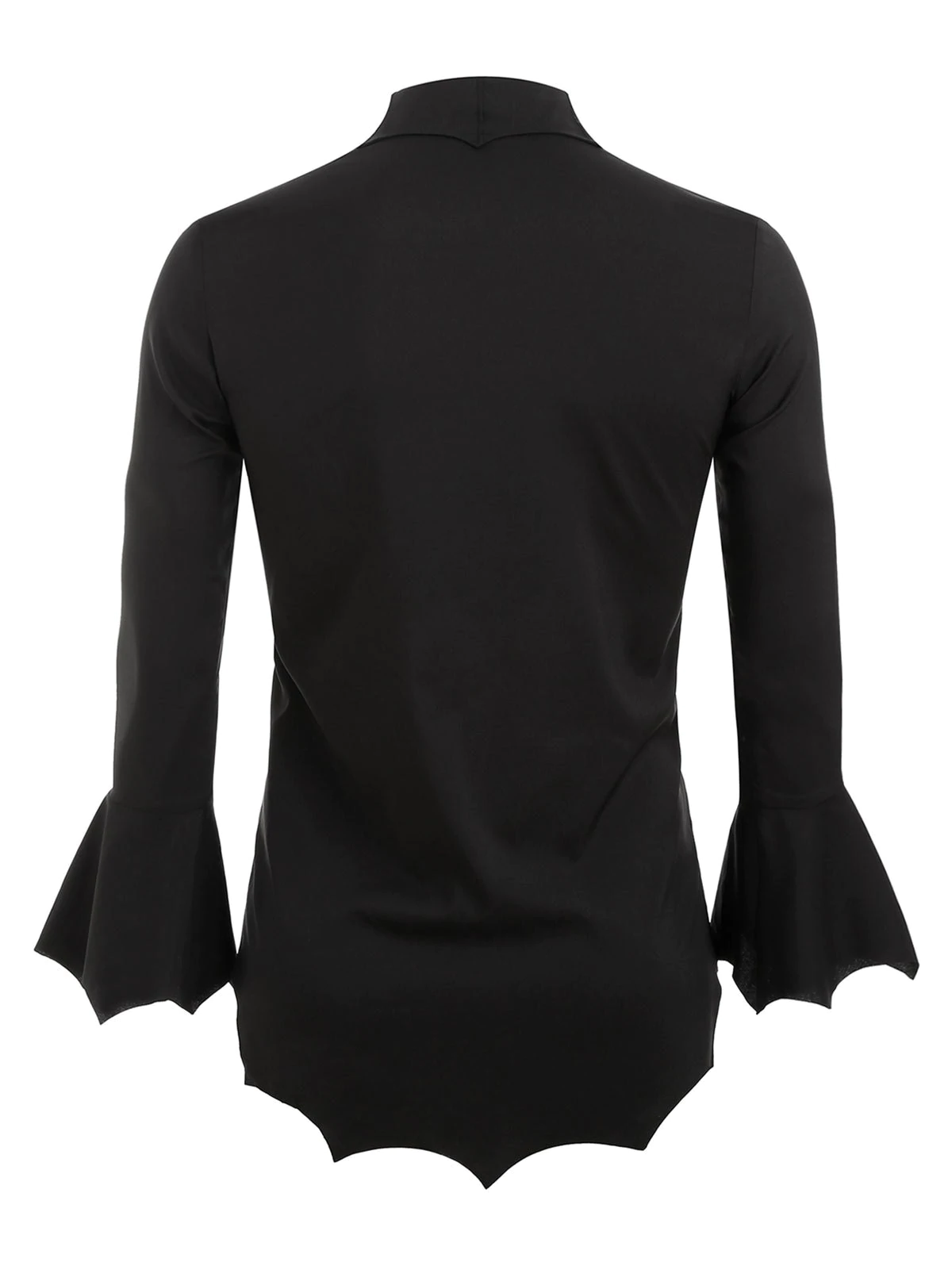 Halloween Poet Sleeve Bat Hem High Low Button Up Shirt