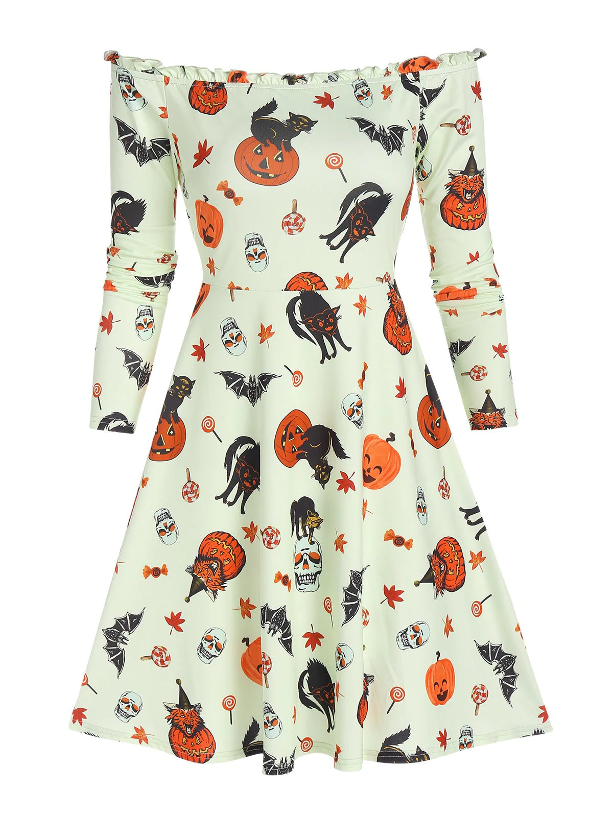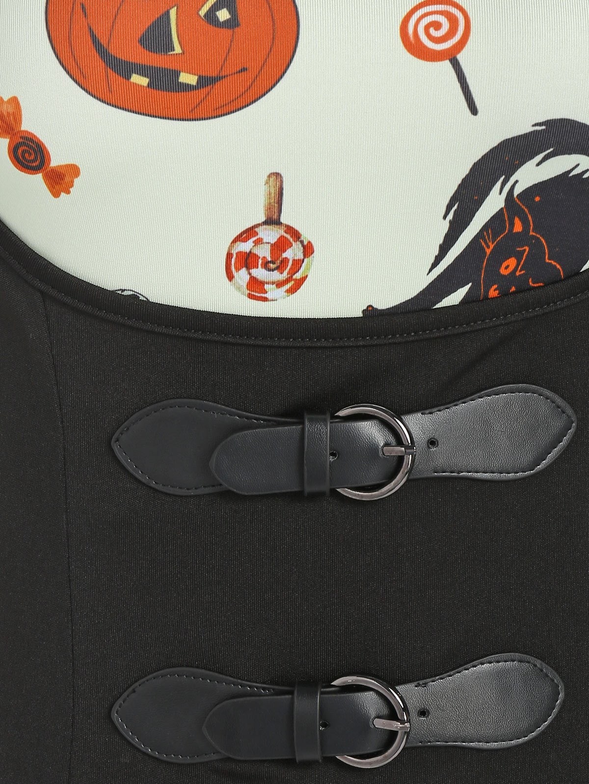 Halloween Pumpkin Animal Print Dual Buckle High Low Two Piece Dr