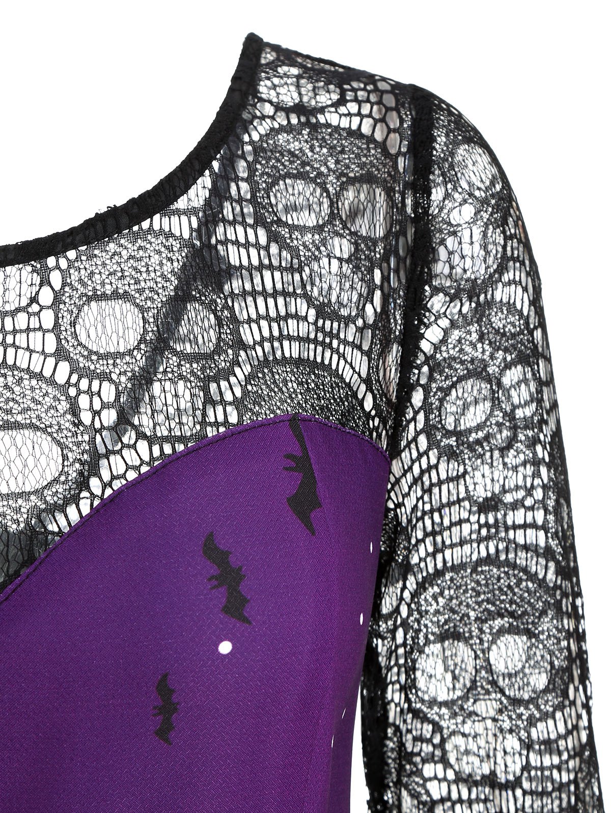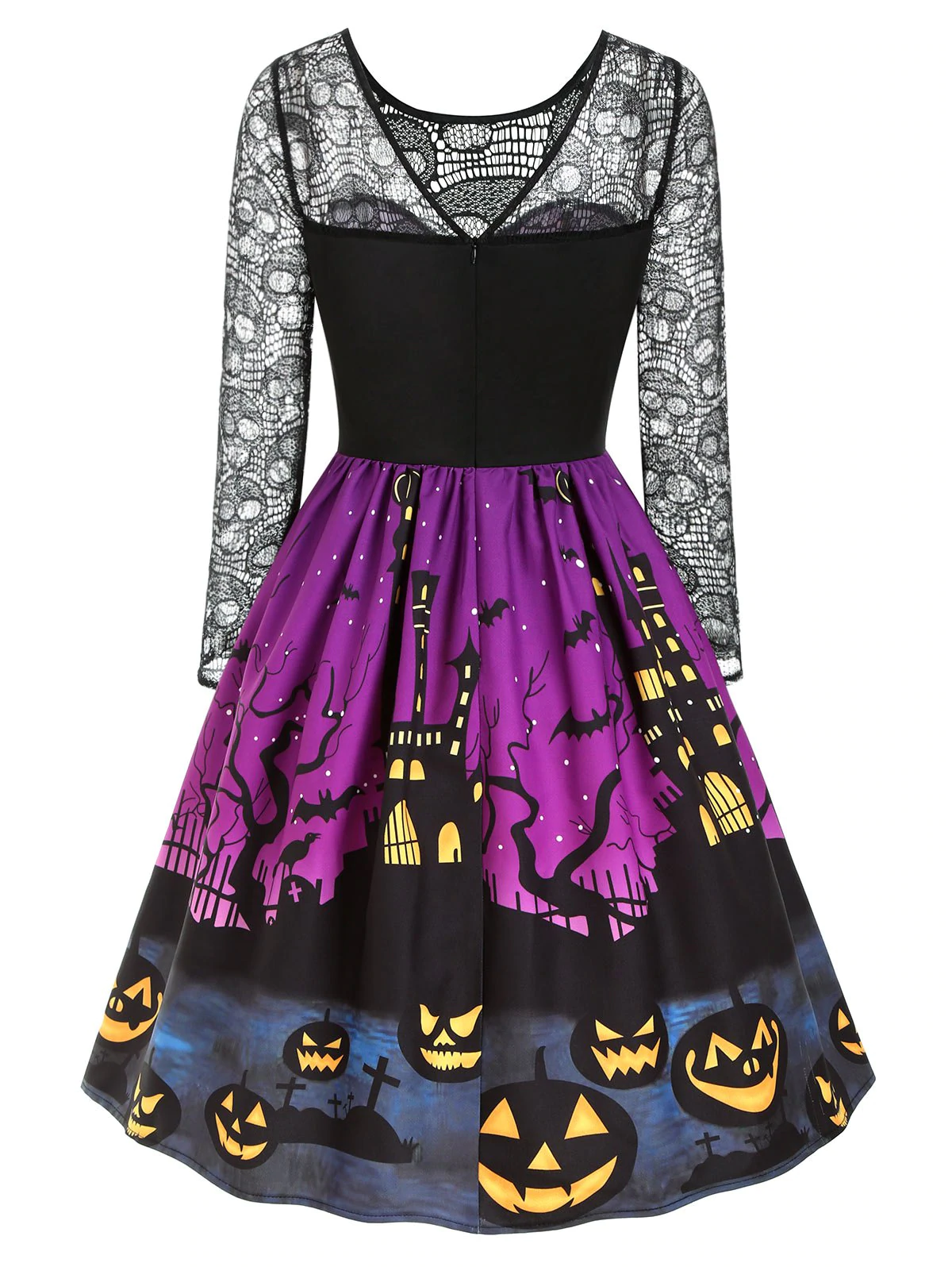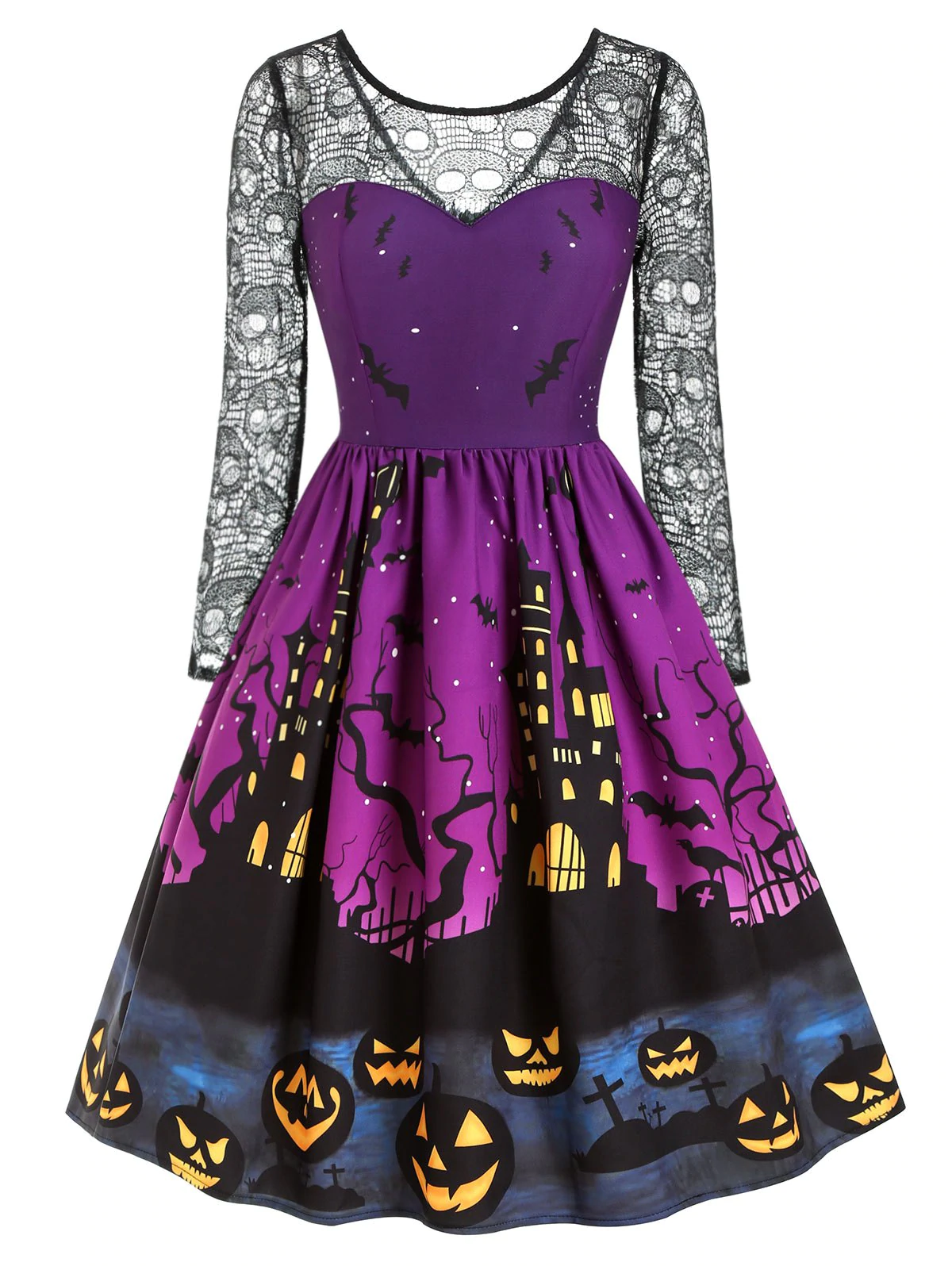 Halloween Pumpkin Bat Print Lace Insert Dress
