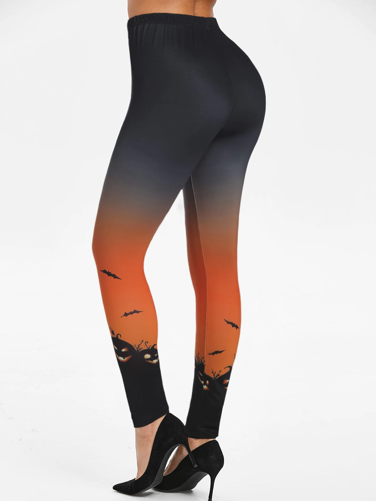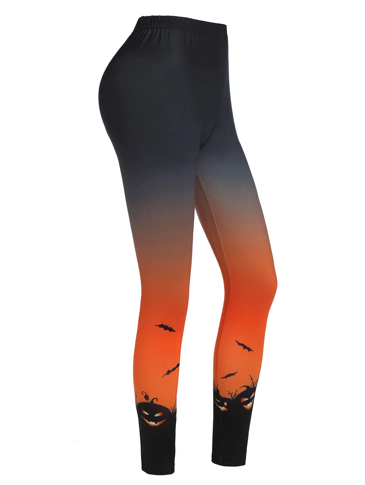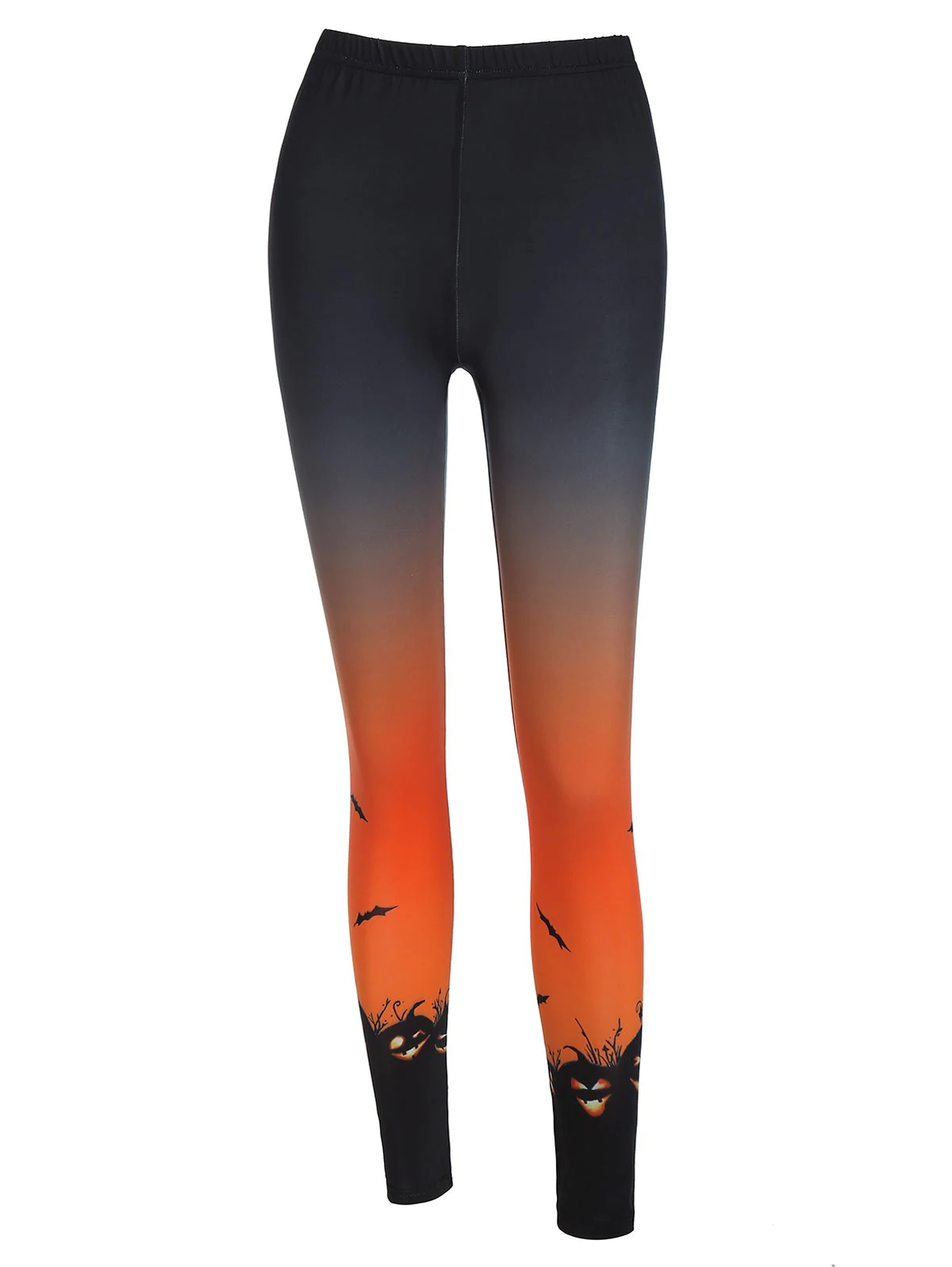 Halloween Pumpkin Print Skinny Pull On Leggings