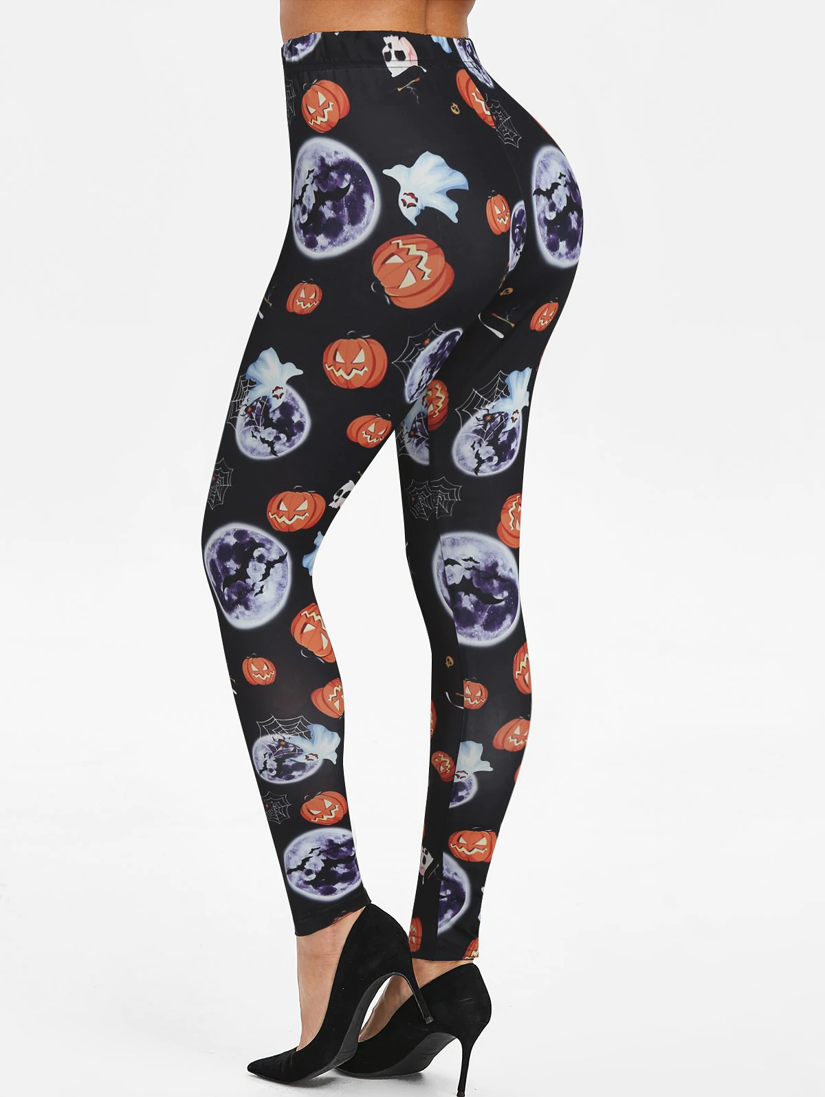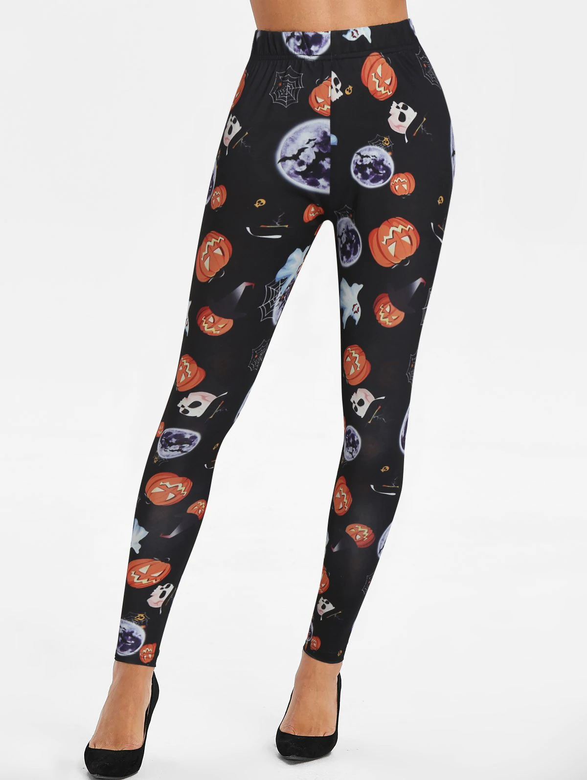 Halloween Pumpkin Skull Moon Print Skinny Leggings