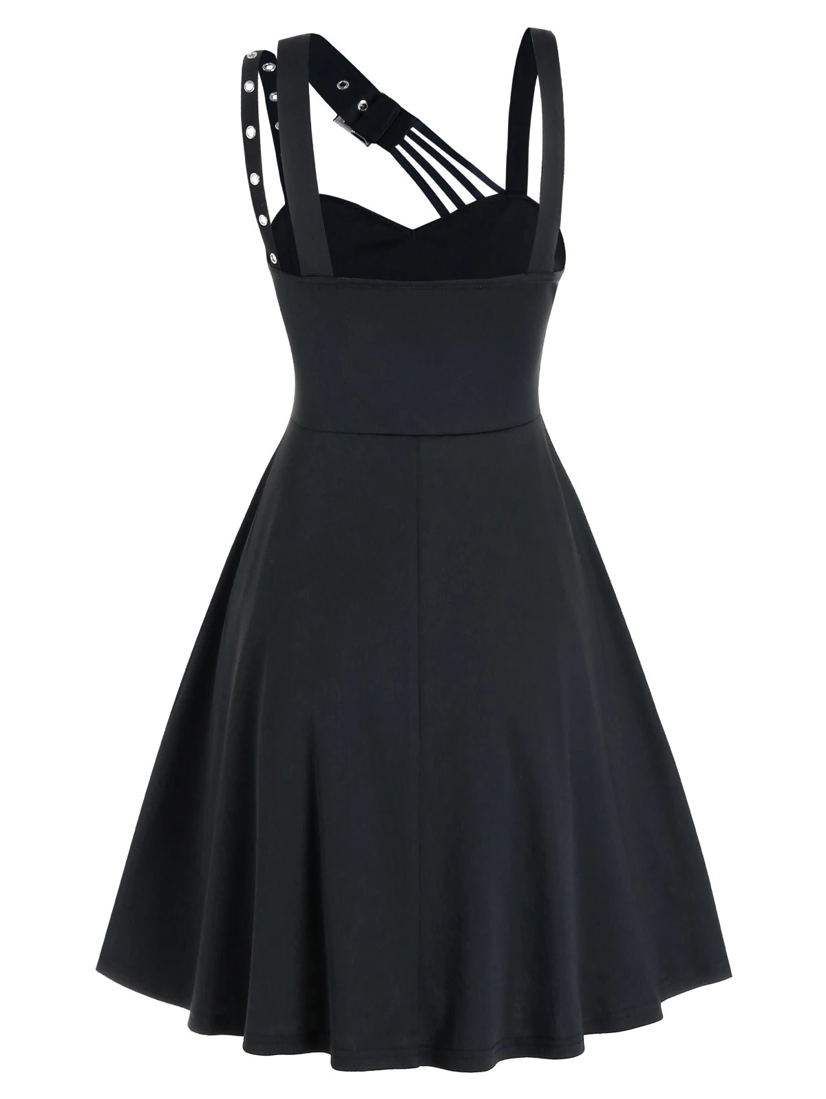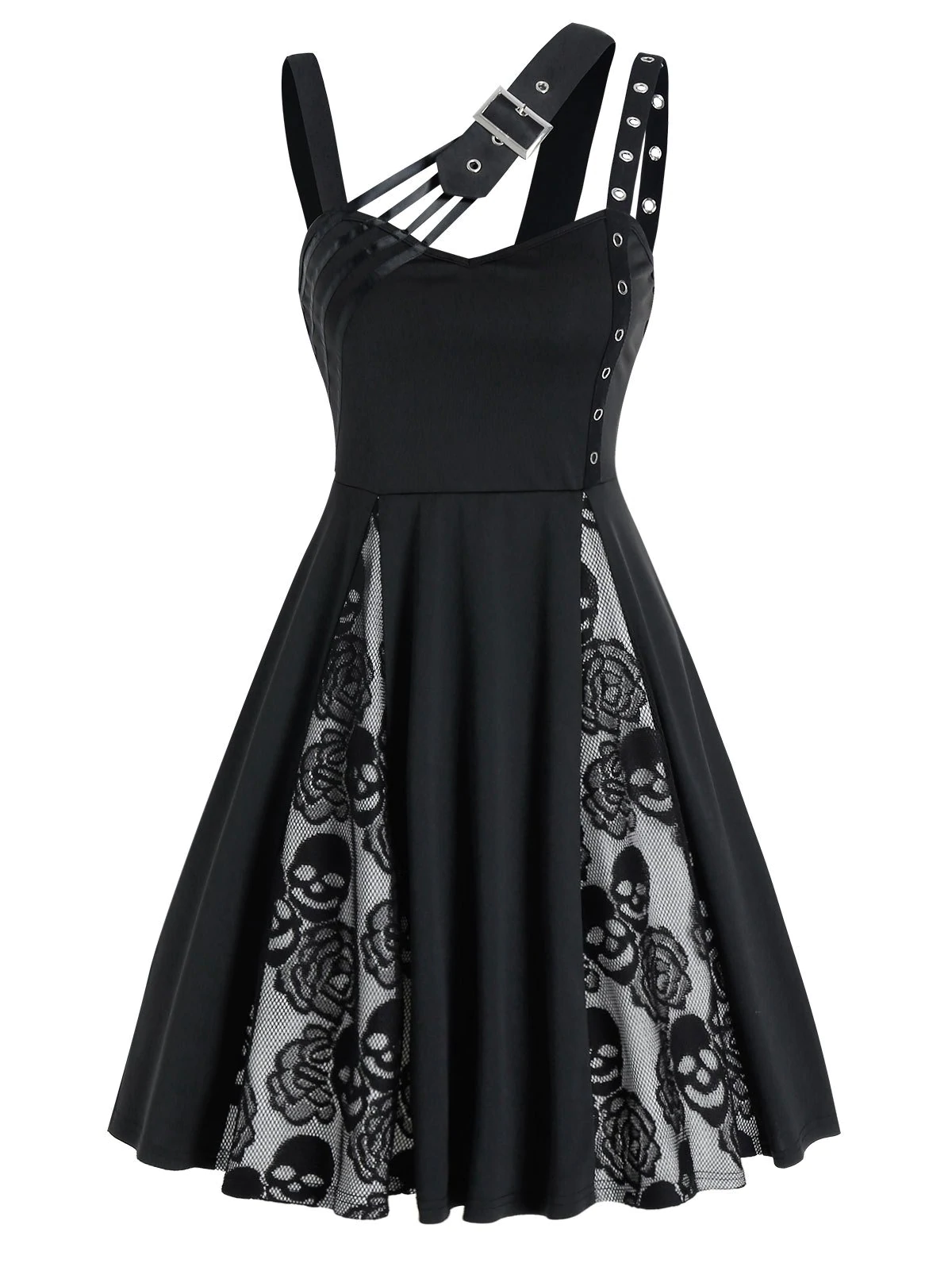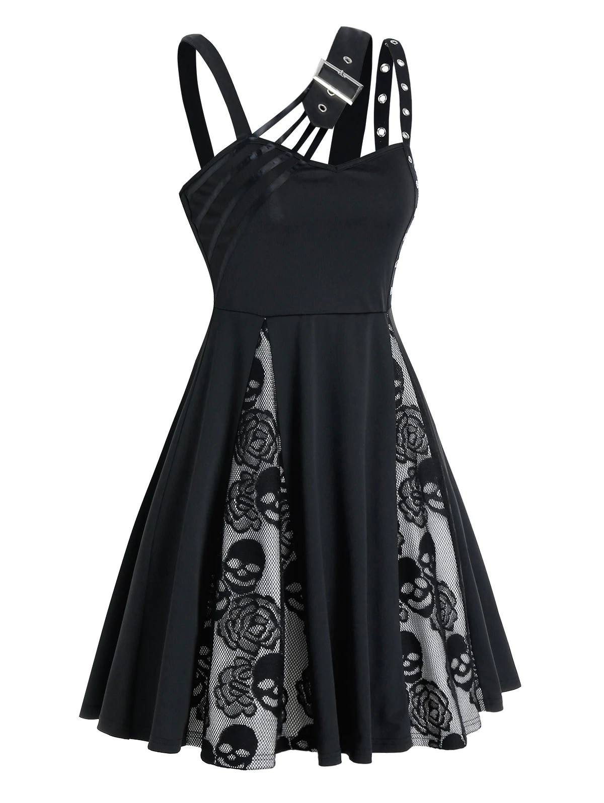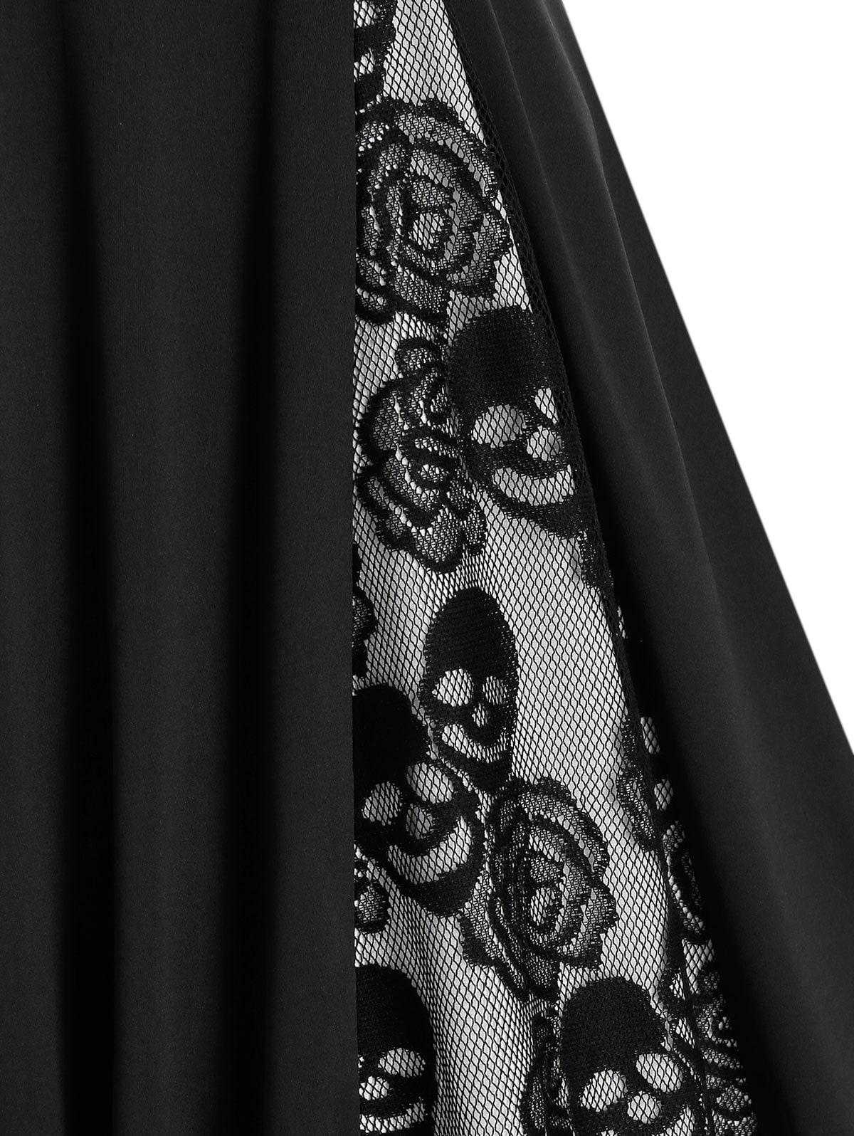 Halloween Skull Flower Lace Insert Sleeveless Dress