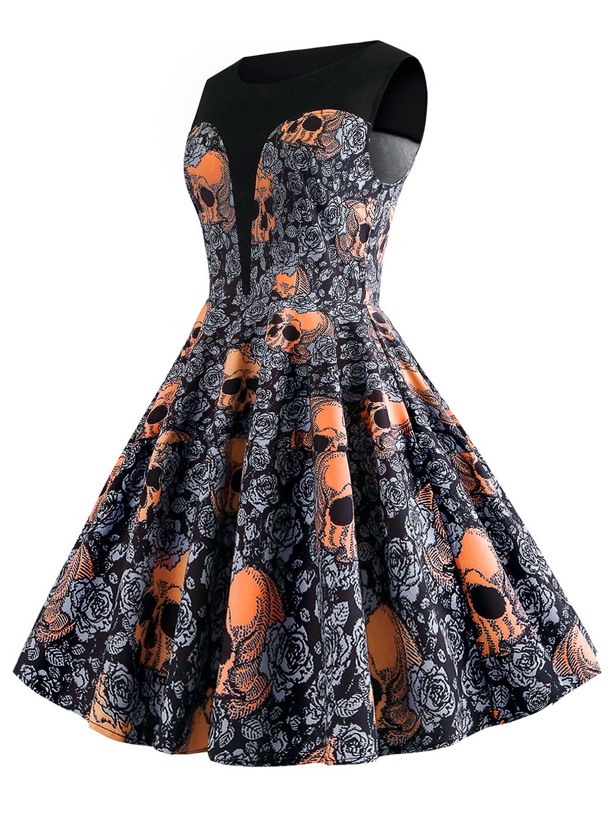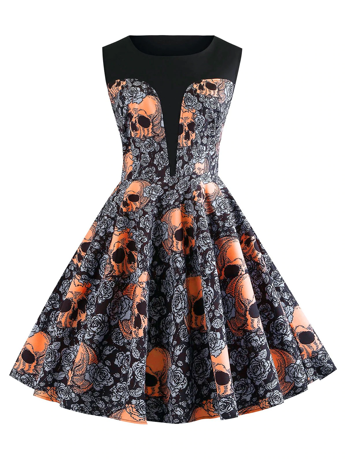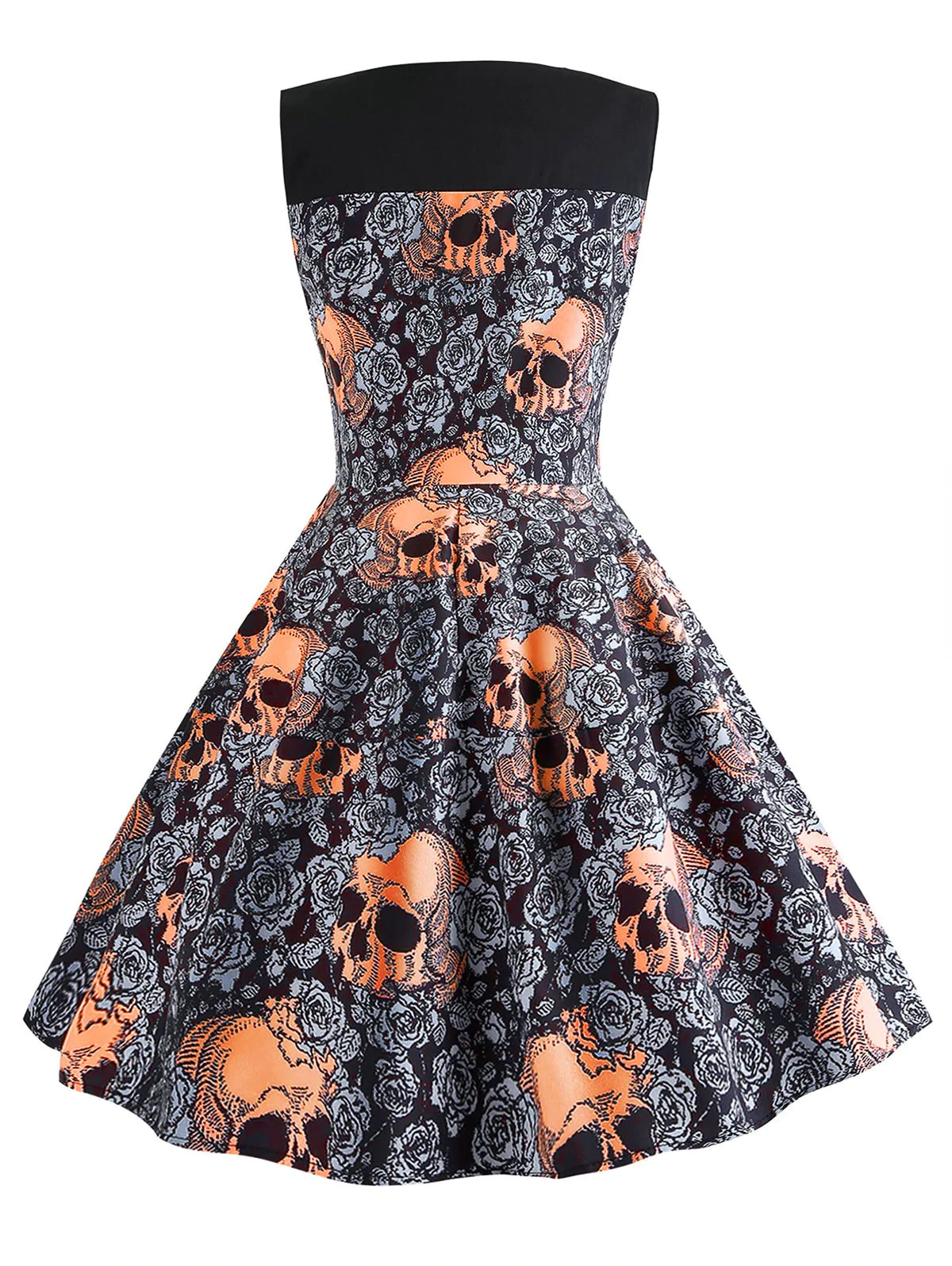 Halloween Skulls Flower Fit and Flare Vintage Dress