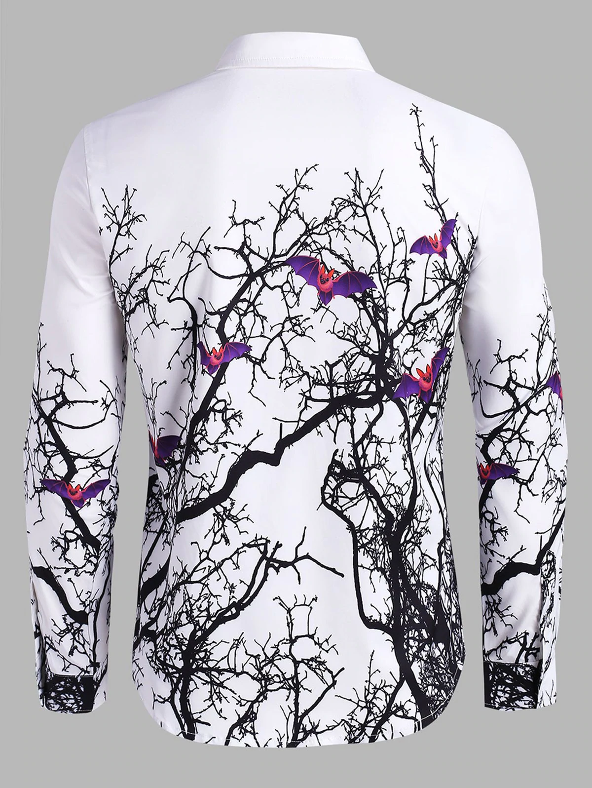 1 review for Halloween Tree Bats Print Button Up Shirt