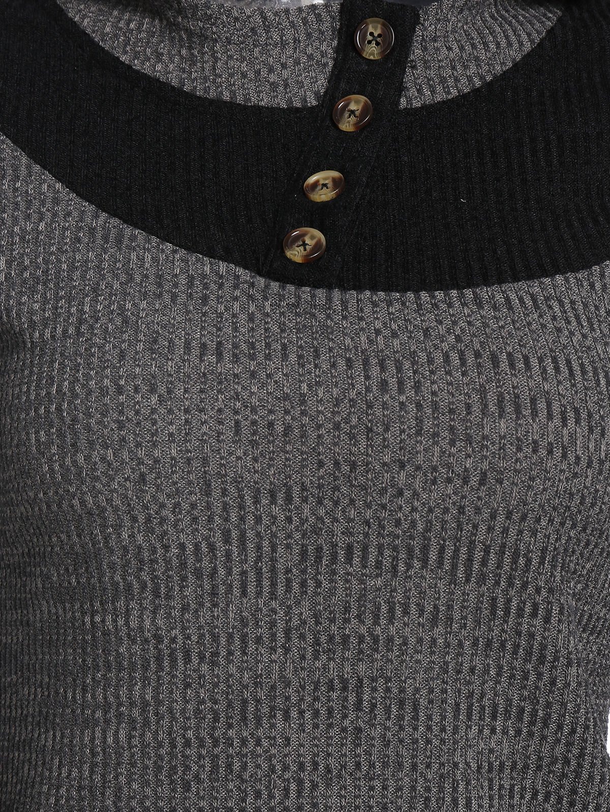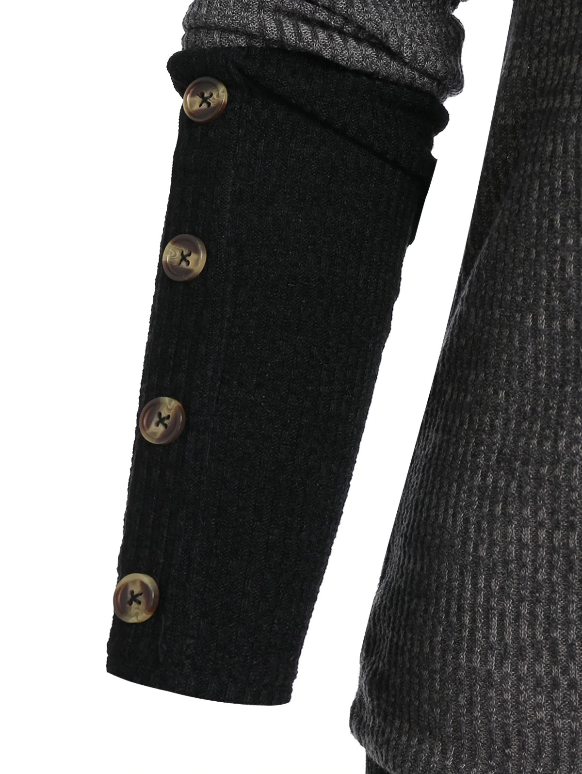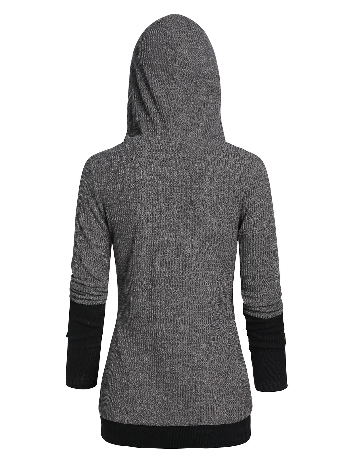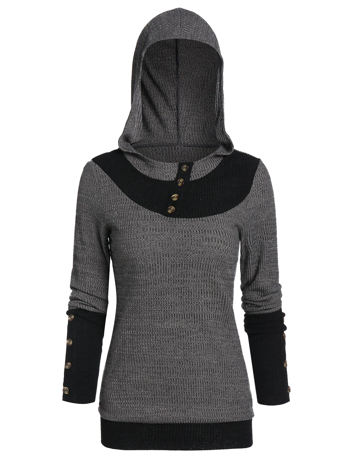 Hooded Button Embellished Contrast Ribbed Knitwear