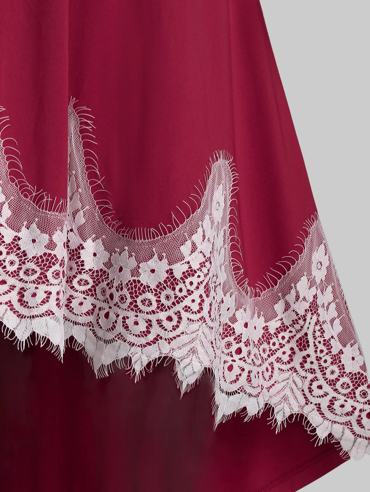 3 reviews for Lace Insert Knotted Strappy High Low Dress