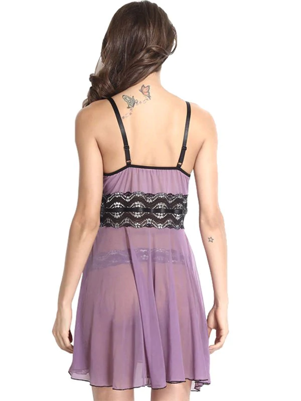 Lace Insert Sheer Mesh Bowknot Flyaway Lingerie Dress
