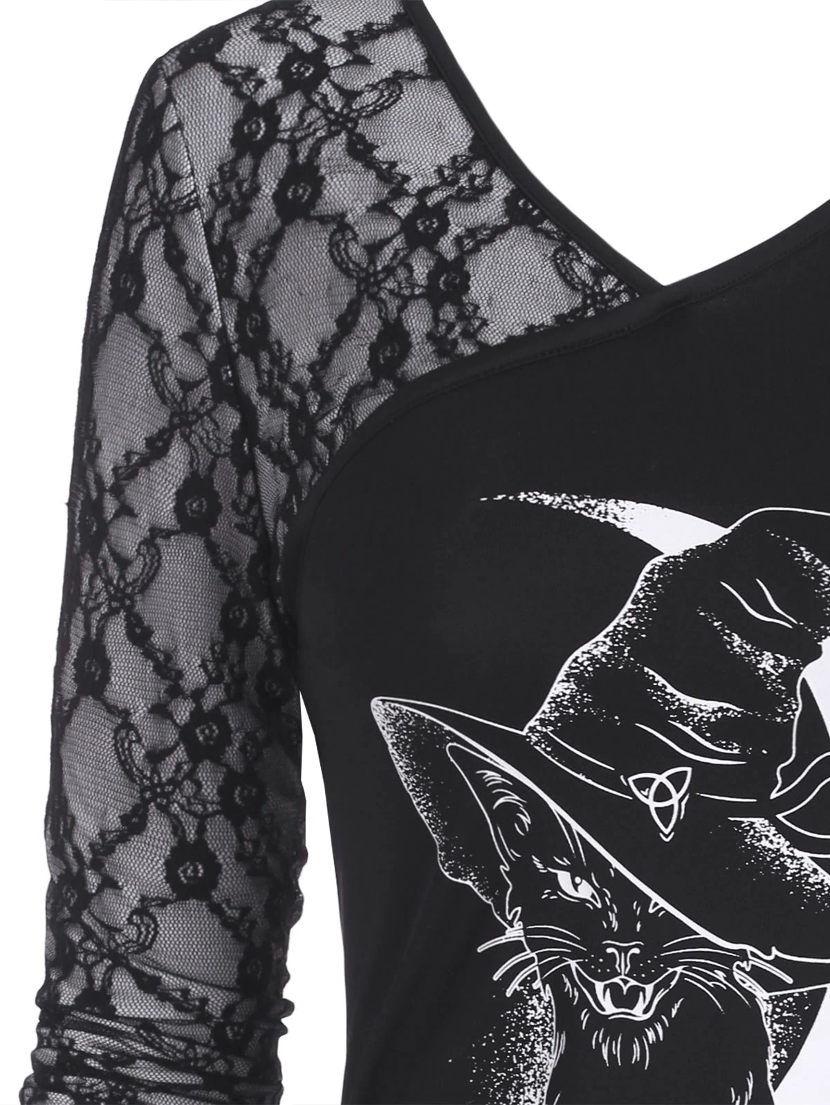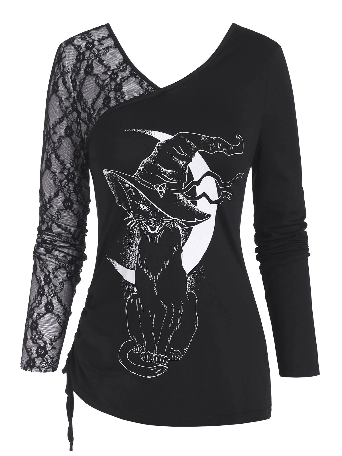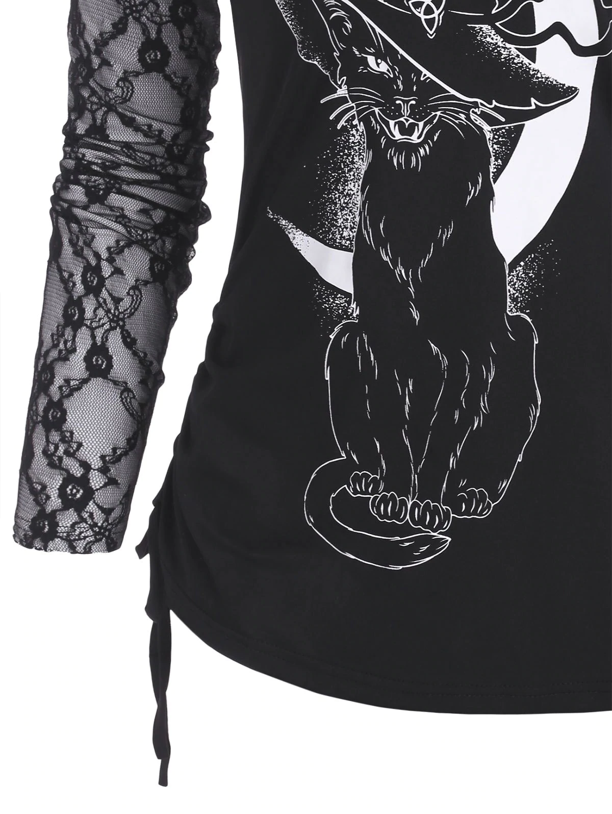 Lace Panel Cinched Witch Cat Halloween Top