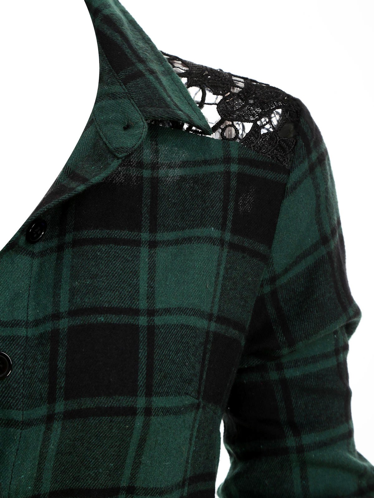 1 review for Lace Panel Plaid Button Up Belted Shirt